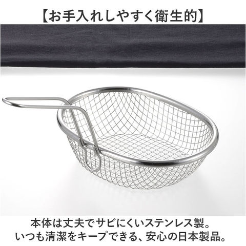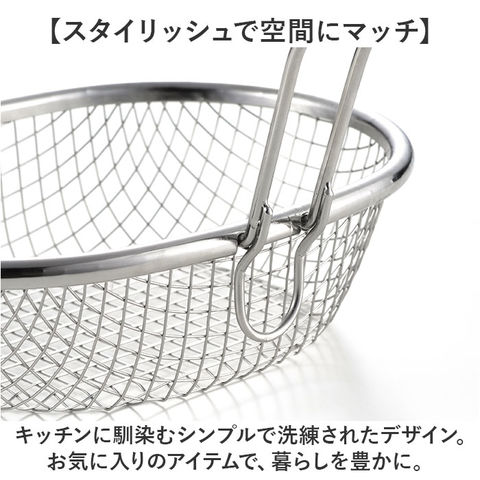 | 商品説明 | 【調理時の頼りになる相棒】揚げ物調理を快適に。使い勝手ばっちりな「aikata ステンレス揚げザル」が新登場。【効率的な調理が叶う設計】揚げ鍋にぴったりサイズ。一緒に使えば、調理効率がアップ!(※)当店別ページにて、揚げ鍋単品またはセット販売を行っております。揚げ鍋商品コード:aikataagenabe/はセット品商品コード:agenabeset2【美味しさのタイミングを逃さない♪】唐揚げやポテトを一気に揚げられる!程よい深さのオーバル形状。【縁に引っ掛けて油切りもすっきり】鍋の縁に引っ掛けられるフック付き。油をサッと切ることが可能。【お手入れしやすく衛生的】本体は丈夫でサビにくいステンレス製。いつも清潔をキープできる、安心の日本製品。【食洗機対応で簡単お手入れ】食洗機を使用できて、お手入れラクラク。忙しい毎日の味方。【スタイリッシュで空間にマッチ】キッチンに馴染むシンプルで洗練されたデザイン。お気に入りのアイテムで、暮らしを豊かに。【aikata-アイカタ-】新潟県燕三条の地場の技術を駆使し、日々の暮らしをより豊かなものにするための道具を。 |