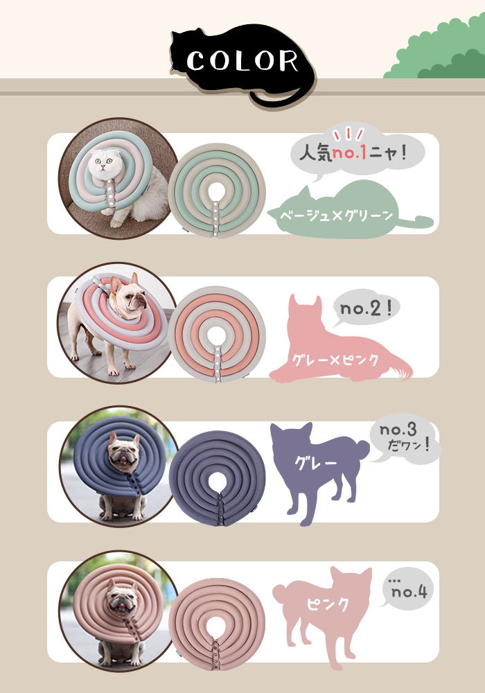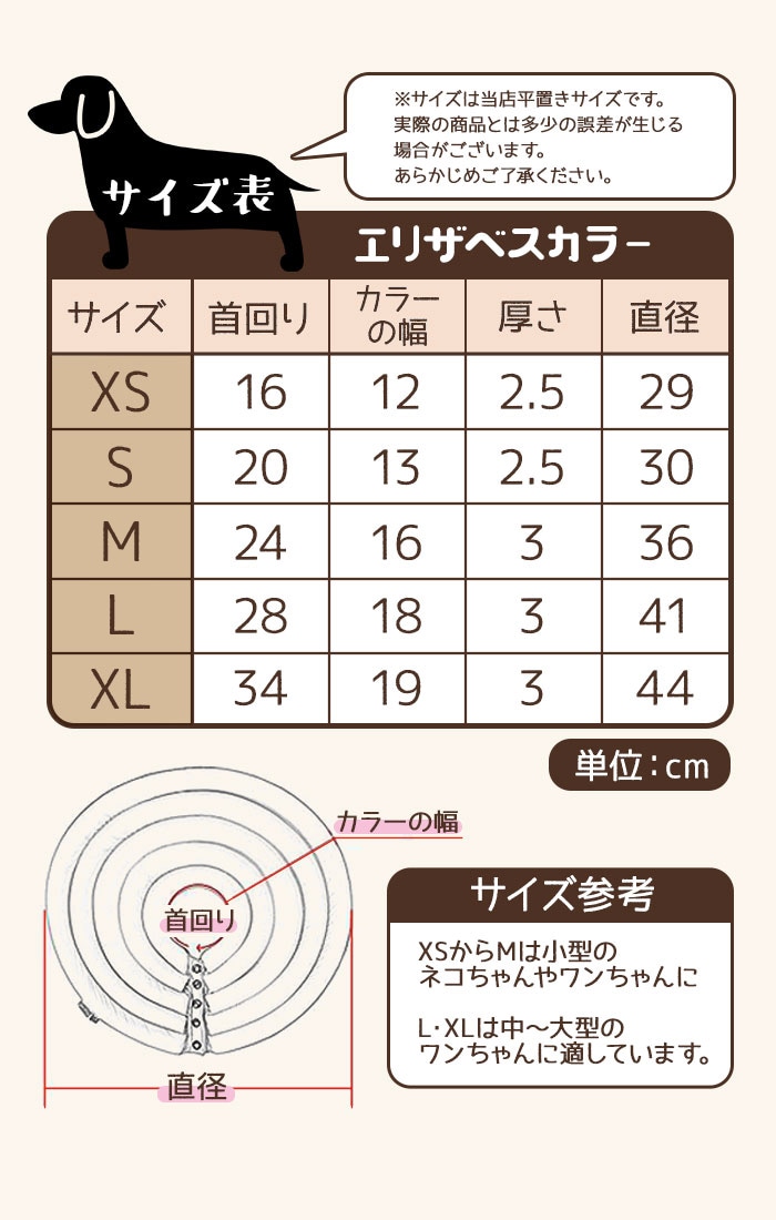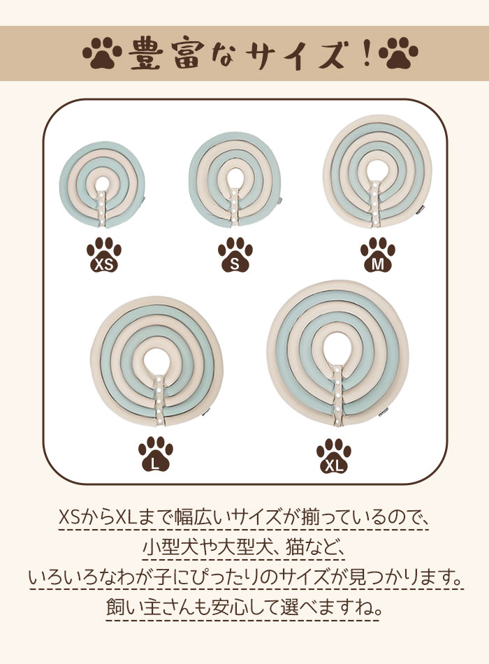 | 商品説明 | ソフトなタッチで首回りに不快感を与えず装着できる♪犬猫用エリザベスカラーが新登場。ポリエステル素材を使用。軽量なつくりかつ乾きやすい素材だからお洗濯ラクラク。カラーの付け外しはボダンをパチっとするだけの簡単仕様。ワンちゃん、猫ちゃんのお風呂、爪切り、注射、投薬などのシーンで活躍するのはもちろん、ソフトタイプだから装着したまま寝る事もできる。サイズ展開が豊富だから、身体の大きさに合わせて選べるのが嬉しい。 |