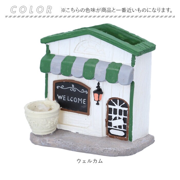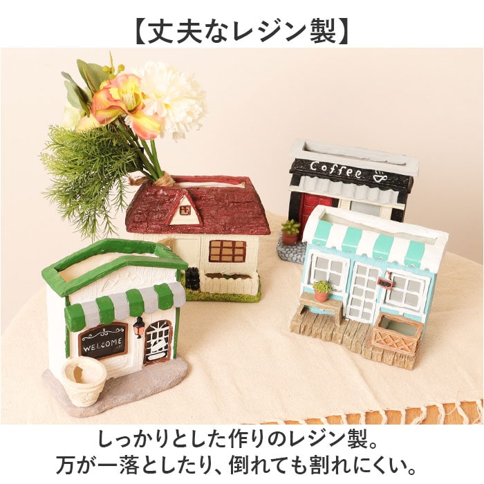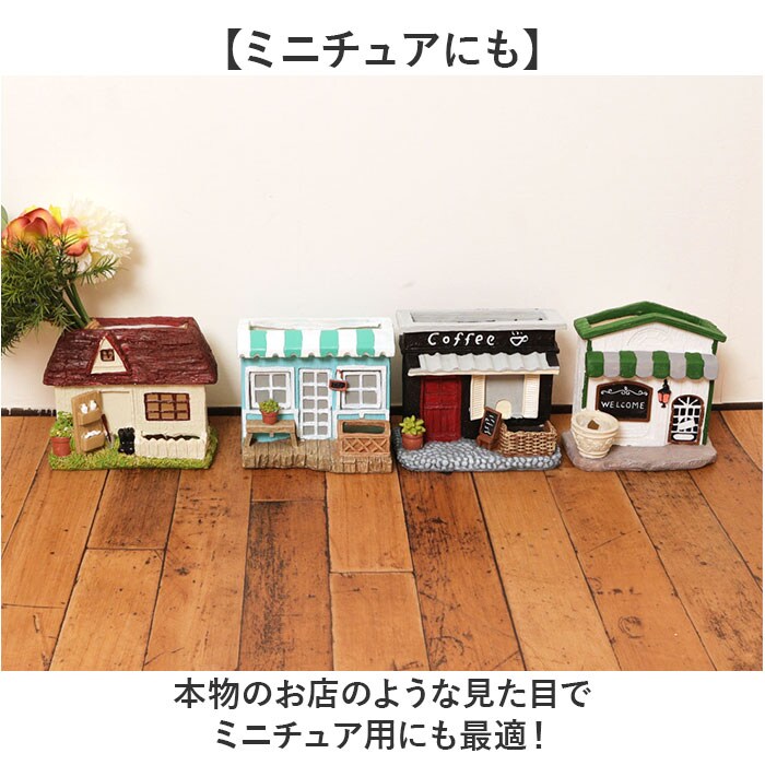 | 商品説明 | 【インテリアにもガーデニングにも】北欧風なお店のデザインが可愛い!ハウスポットが発売♪【北欧風デザイン】海外のおしゃれな個人店のような見た目◎粗めの塗装がゆるく可愛いさもあり!【丈夫なレジン製】しっかりとした作りのレジン製。万が一落としたり、倒れても割れにくい。【お花や小物入れに】お花を入れるのはもちろん、ペンなど小物を挿して使える。卓上にも置けるサイズ感。【ミニチュアにも】本物のお店のような見た目でミニチュア用にも最適! |