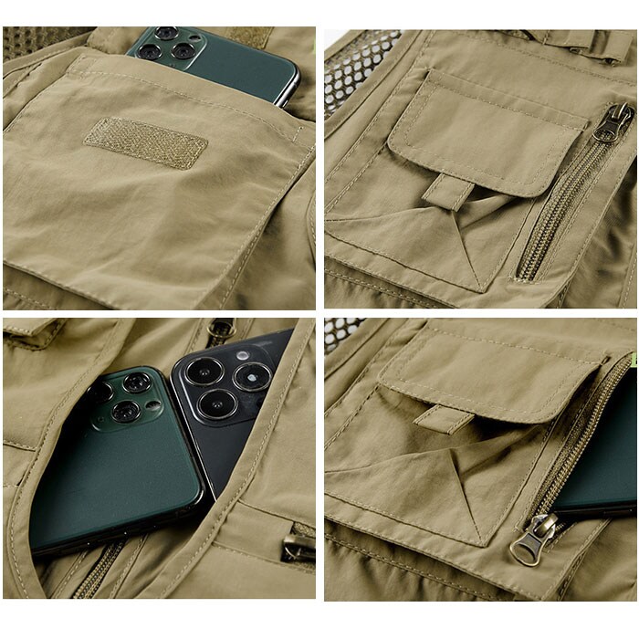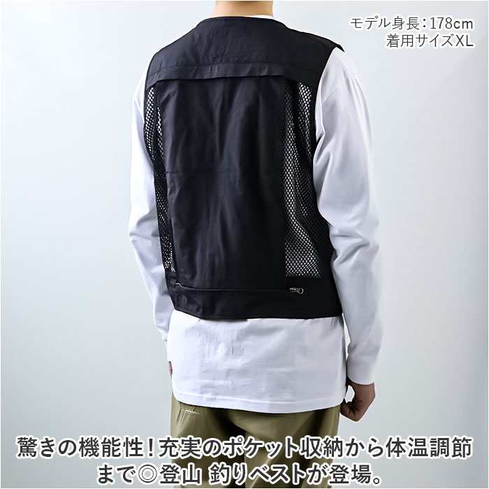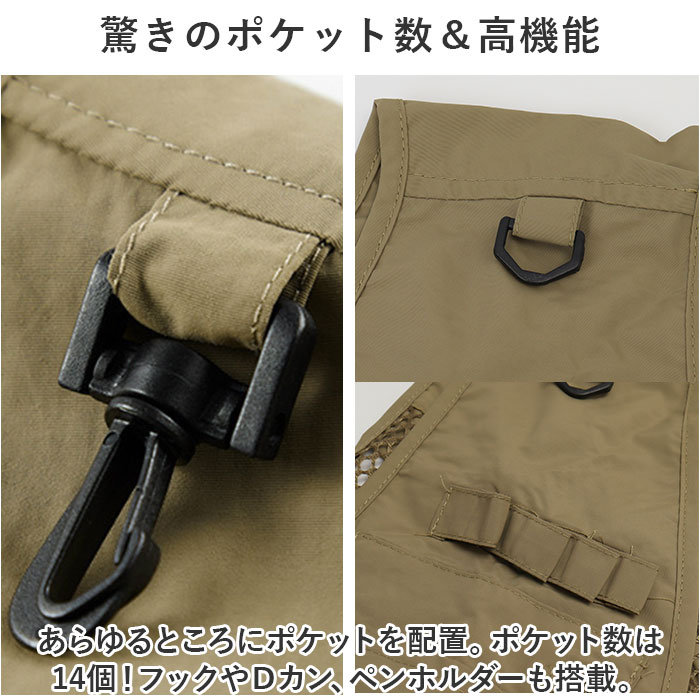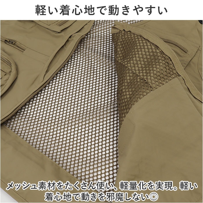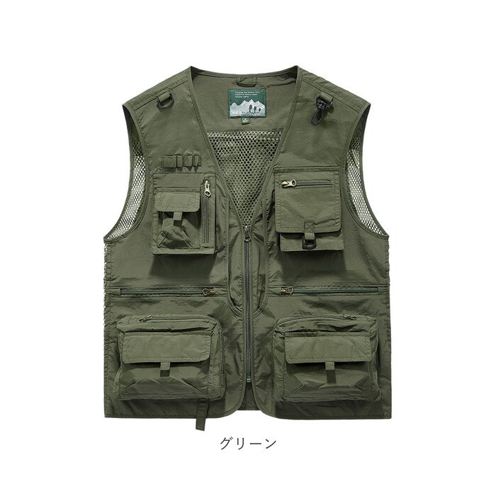 | 商品説明 | 驚きの機能性!充実のポケット収納から体温調節まで◎登山 釣りベストが登場。【驚きのポケット数&高機能】あらゆるところにポケットを配置。ポケット数は14個!フックやDカン、ペンホルダーも搭載。【背面ファスナーで体温調節◎】背面のファスナーを開けるとメッシュ仕様に早変わり!暑い季節に通気性をさらにUPできる◎【軽い着心地で動きやすい】メッシュ素材をたくさん使い、軽量化を実現。軽い着心地で動きを邪魔しない◎【着ぶくれしにくいシルエット】着ぶくれしにくいすっきりシルエットなので、アウターの中に着込んでも◎ロングシーズンOK。【シーンや性別を選ばないデザイン】シンプルなデザインなので、幅広いシーンでの使用が可能。ユニセックスで使うのもオススメ。【ポケット仕様】フロント:面ファスナーフラップポケット×4、ファスナーポケット×6、内サイドオープンポケット×2内側:面ファスナーポケット×2 |