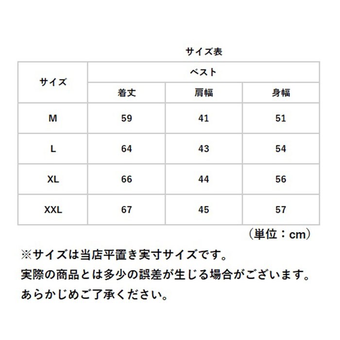 | サイズ | [メンズ] ・Mサイズ ・Lサイズ ・XLサイズ ・XXLサイズ ※サイズについて詳細は、商品画像の中にあるサイズ表をご覧くださいませ。 |