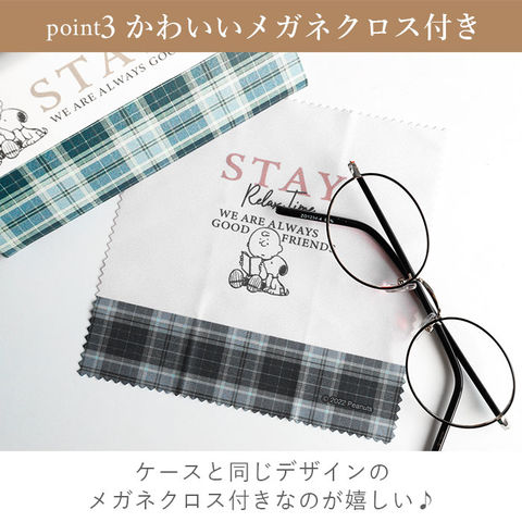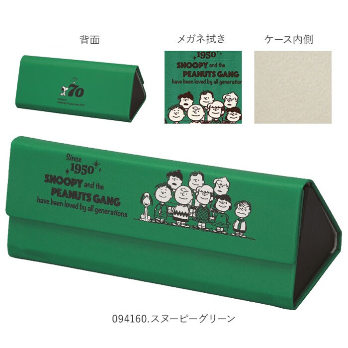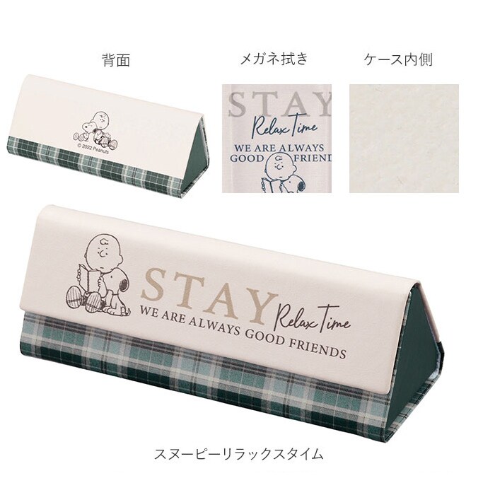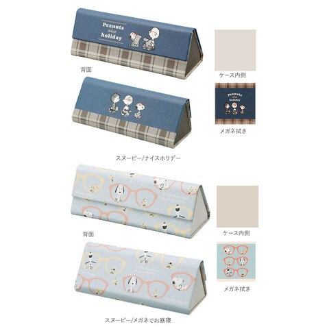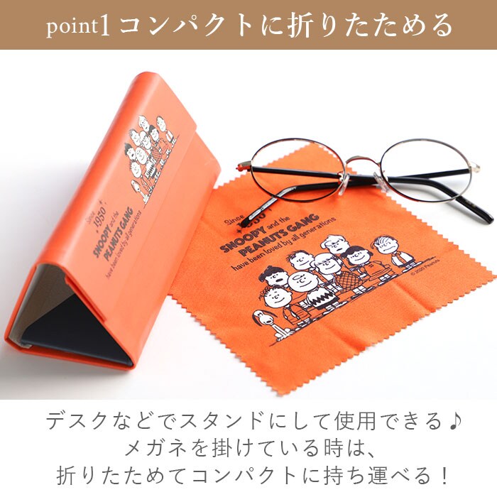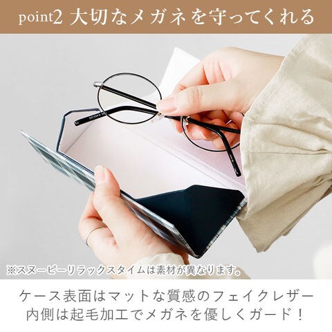 | 商品説明 | ほのぼのキャラクターたちのデザインに癒される!コンパクトに折りたためるメガネケース!卓上では三角の眼鏡スタンドに変身!オフィスや自宅のダイニングテーブルでも、大切なメガネをオシャレに収納♪メガネを掛けている時には、ケースをスリムに折りたためて、カバンのポケットやジャケットのポケットに入れて、コンパクトに持ち運べる!ケース表面はマットな質感で高級感のあるフェイクレザー素材。内側は起毛加工された素材で、メガネを優しくガード!ケースと同じ柄のデザインのメガネクロス付きなのが嬉しい♪スヌーピーやムーミンなど、楽し気なキャラクターたちをカバンの中に忍ばせて、今日も元気にお出掛け! |