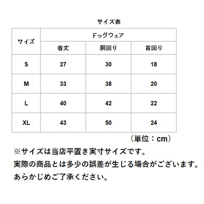 | サイズ | 【ドッグウェア】 ・Sサイズ ・Mサイズ ・Lサイズ ・XLサイズ ※サイズについて詳細は、サイズ表をご覧ください。 |
