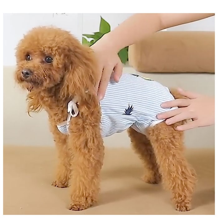 | 商品説明 | やわらか素材がワンちゃんに優しい、術後服。手術後や皮膚疾患の治療中のペットが、患部を舐めてしまったり、噛んでしまうことを防ぐお洋服。お手持ちのマナーパッドを取り付ければ、定期的にトイレに行くことができない小さなワンちゃんも安心。尻尾を通す穴付きで動きやすい◎薄手の素材なので暑い夏にも対応でき、1年中快適な着心地。妊娠やお腹の冷え予防、介護用としても活躍するアイテム。 |