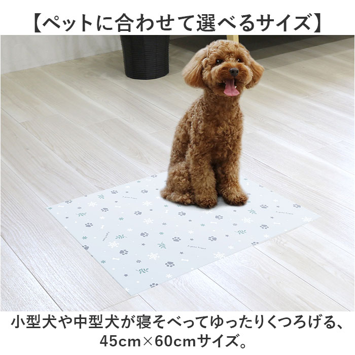 | 商品説明 | 【ワンコもニャンコもひんやり快適】コロンと寝そべったらひんやリ気持ちいい♪ペットのための「消臭防水ひんやりマット」が新登場!【接触冷感生地がひんやりのヒミツ】表面に冷たさを感じる鉱石を含んだ特殊加工をすることで、ペットの身体が触れるとひんやり。【防水仕様でお手入れ簡単】表面に水が染みこまない両面防水仕様。おもらしや食べこぼし汚れもサッとひと拭きで簡単キレイ。【ペットの気になるニオイを軽減】素材に含まれる吸着消臭効果で気になるニオイを軽減。水洗いすることで消臭効果が回復。【大きさもカタチも自由にカット】薄手の塩化ビニル樹脂素材なので、マットを敷くスペースに合わせてハサミで自由にカット可能。【薄型シートでコンパクト収納】約1mmの薄型シートだから、段差が少なくつまづきにくくて安心。オフシーズンは丸めて収納可能。【ペットに合わせて選べるサイズ】小型犬や中型犬が寝そべってゆったりくつろげる、45cm×60cmサイズ。【インテリアに馴染むお洒落な絵柄】あしあとや石目など、お部屋の雰囲気に合わせて選べるカラーバリエーションも魅力のひとつ。 |