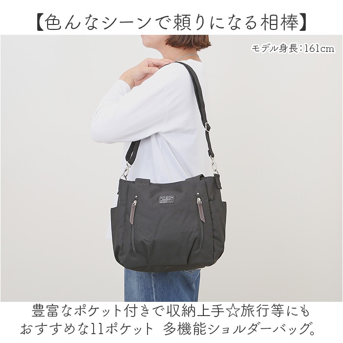 | 商品説明 | 【色んなシーンで頼りになる相棒】豊富なポケット付きで収納上手☆旅行等にもおすすめな11ポケット 多機能ショルダーバッグ。【軽やかな使い心地でストレスフリー】体に負担がかかりにくい軽量設計。荷物を沢山入れても、重くなりすぎずアクティブに動ける!【お好みに合わせてスタイルチェンジ】短いハンドルを使ってトート使い。長さ調節可能なショルダーを取り付け、肩掛けや斜め掛けも!【開閉スムーズ、安心の天ファスナー】ガバっと開いて取り出しやすく、ファスナーを閉じれば中身の飛び出しをガード。【B5対応でざっくりひとまとめ】B5がすっぽり。程よくマチを設け、ポーチなどお出かけに必要な物を収納できるサイズ感。【充実の11ポケットで迷子知らず】合計11個のポケットを配置。細々した物もすっきり整頓できて、バッグの中で探す手間が不要。【お揃いOK☆ユニセックスデザイン】シンプルでラフに持ち歩けるアイテム。性別や年代問わず使えてお揃いやシェアもOK!【ポケット仕様】内側:ファスナーポケット×1、オープンポケット×2メインルーム前後:オープンポケット×2前面:オープンポケット×1、縦ファスナーポケット×2サイド:オープンポケット×2背面:オープンポケット×1 |