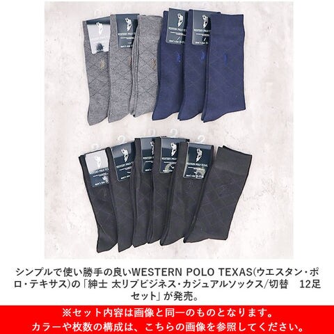 | 商品説明 | シンプルで使い勝手の良いWESTERN POLO TEXAS(ウエスタン・ポロ・テキサス)の「紳士 太リブビジネス・カジュアルソックス/切替 12足セット」が発売。【伸縮素材で快適】伸縮性のある生地が足に優しくフィット。ズレにくく、快適な履き心地。【シンプルでおしゃれなデザイン】靴下と同色のワンポイント刺繍がアクセント。さりげないダイヤ柄でスーツにも合わせやすい。【幅広いシーンで活躍】ビジネスはもちろんスクールやカジュアルにも使え、幅広いシーンで活躍! |