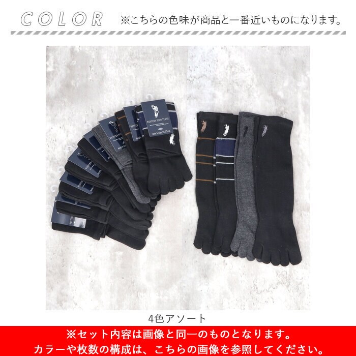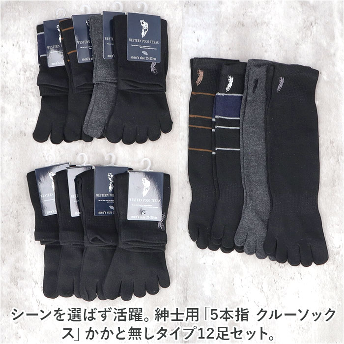 紳士 五本指 クルーソックス(かかと無し)【4色アソート】