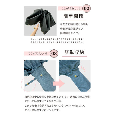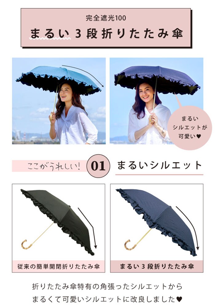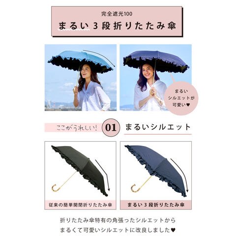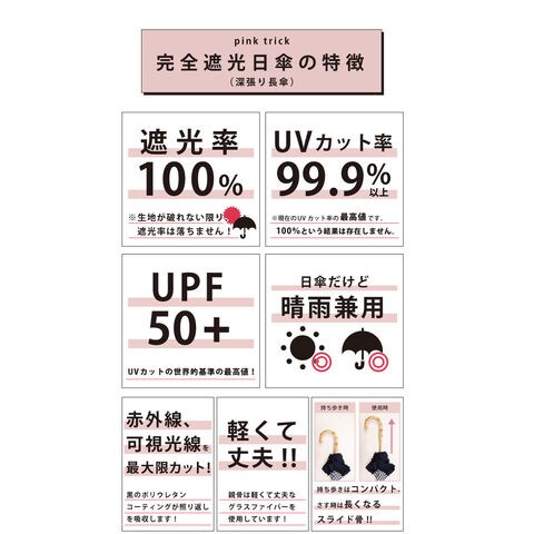 | 商品名 | pink trick 3段折りたたみ傘 晴雨兼用 完全遮光 親骨50cm |