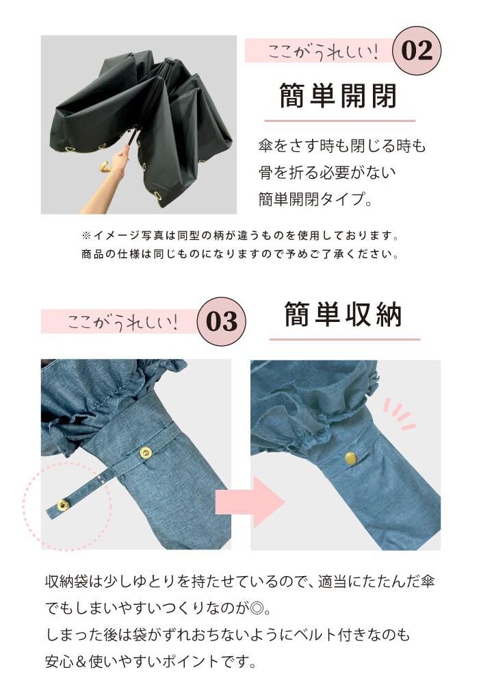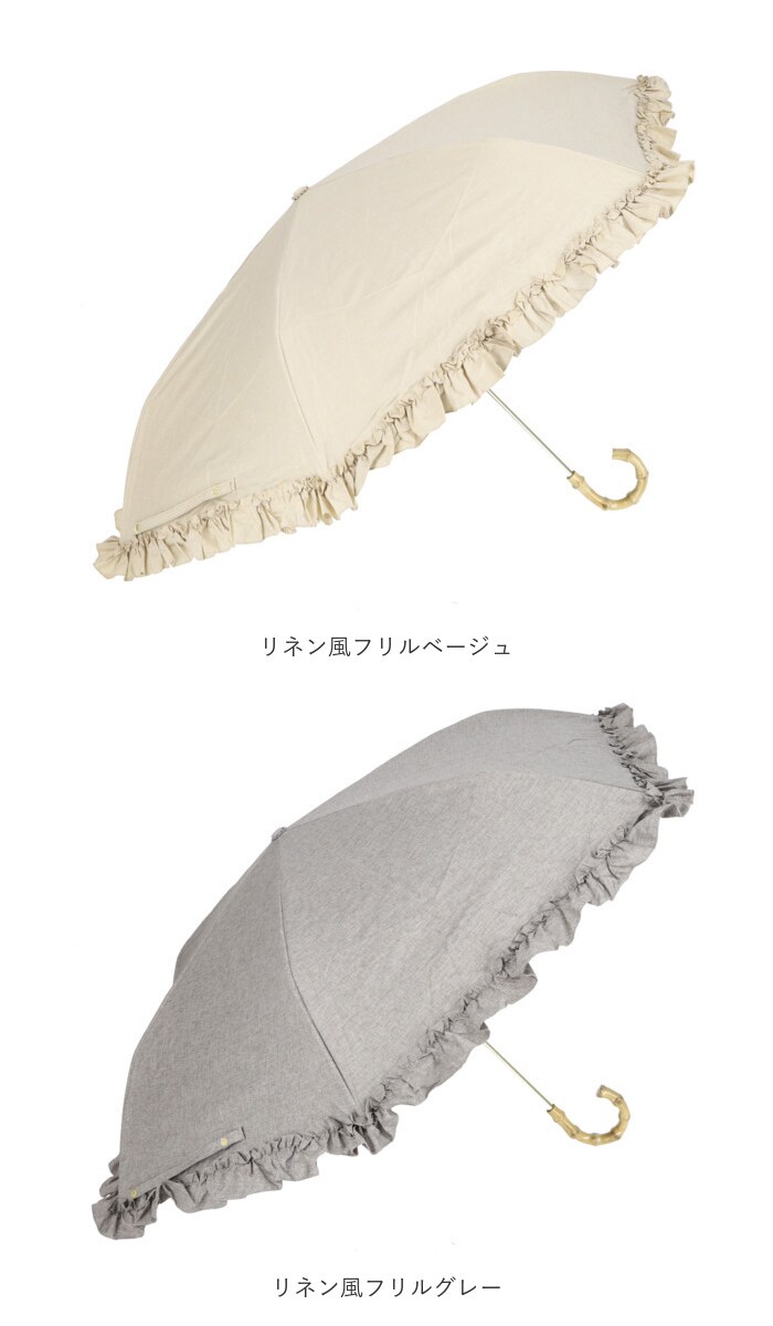 pink trick 3段折りたたみ傘 晴雨兼用 完全遮光 親骨50cm【リネン風フリルベージュ】