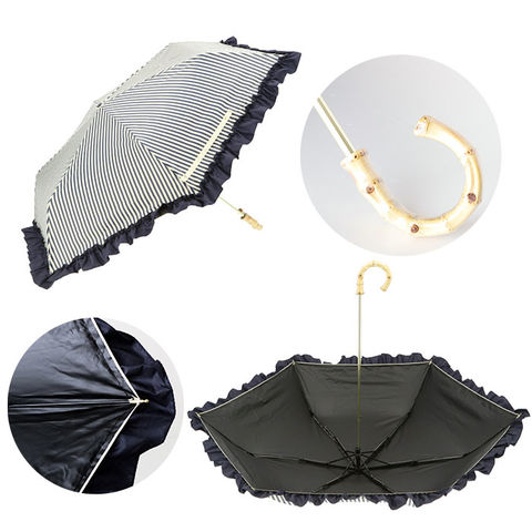 | 商品説明 | 傘骨を手で折らずに簡単開閉!pinktrick(ピンクトリック)の晴雨兼用折りたたみ傘。親骨には軽くて丈夫なグラスファイバー骨を使用。しなやかな弾力性で強い風の日でも安心。傘生地の内側にはブラックコーティングを施し、紫外線はもちろん、地面からの照り返しも吸収し、赤外線や可視光線もカット!遮熱効果ばっちりの遮光率100%で、涼しくて、眩しくない!傘を差さずにいるときに比べ、体感温度がおよそマイナス15度。(※使用されている生地が、JIS規格 JIS L 1055 A法により遮光率100%のものを”完全遮光100”としております。)傘骨をポキポキと折らずに簡単開閉できる手開きタイプ。開閉時に爪や指を挟むのを防止するネイルガード付きで、ネイルアートを施した指でも安全に開閉できる。傘生地にははっ水加工を施し、日傘としてだけでなく、雨傘としても使用可能な晴雨兼用傘。突然の通り雨でも慌てない!爽やかなストライプ柄を可憐なフリルで縁取ったエレガントなデザイン。持ち手ハンドルのバンブー素材がナチュラルで女性らしい雰囲気。 |