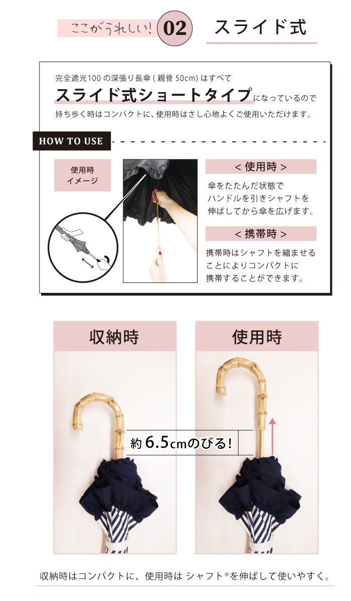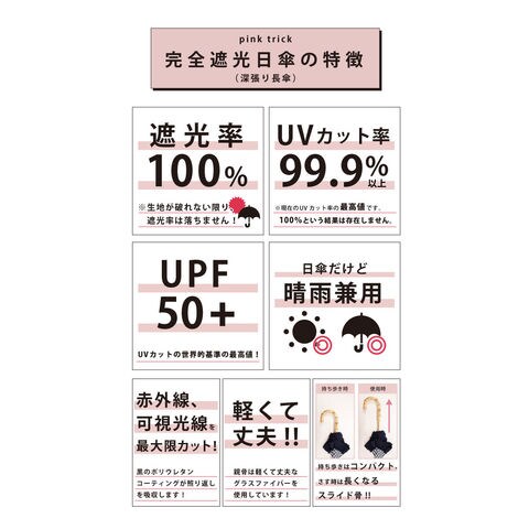 | 商品名 | pink trick 長傘 晴雨兼用 完全遮光 フリル 親骨50cm |