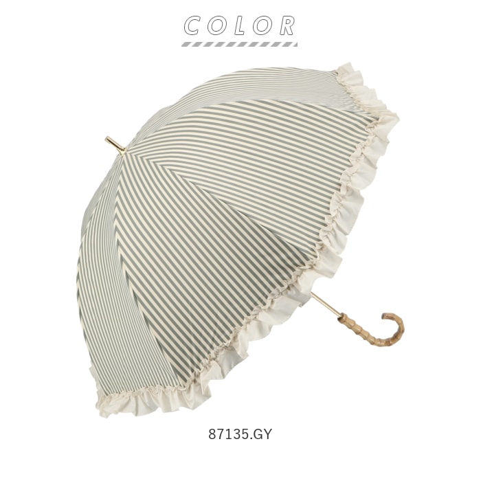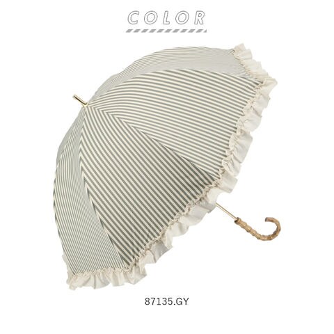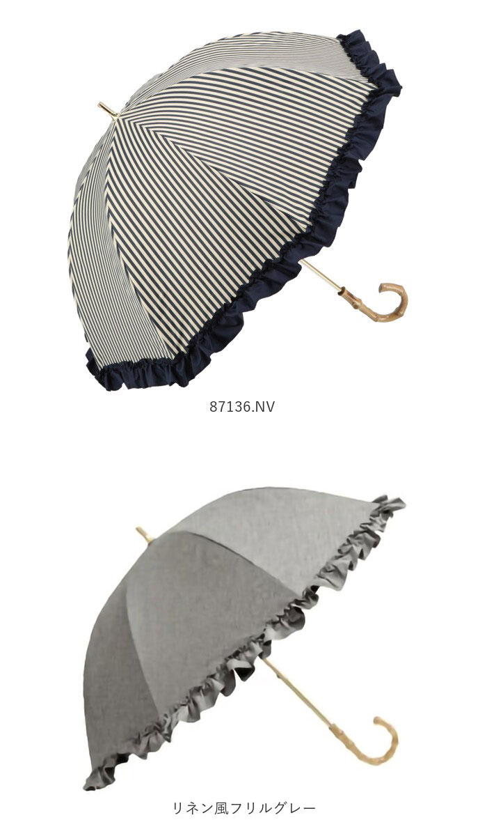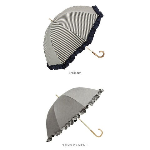pink trick 長傘 晴雨兼用 完全遮光 フリル 親骨50cm【リネン風フリルグレー】