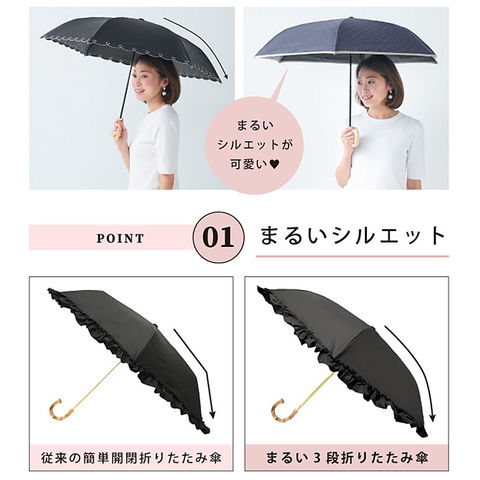 | 商品名 | ピンクトリック まるい3段折傘 晴雨兼用 完全遮光 親骨50cm |