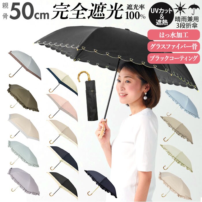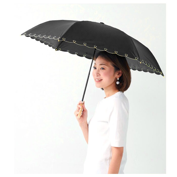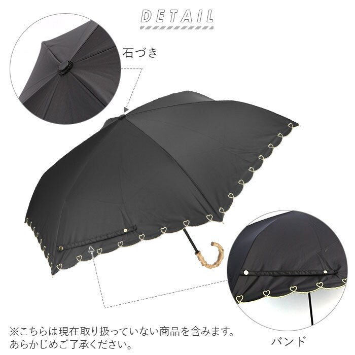| 注意点 | 使用されている生地がJIS規格JIS L 1055 A法により遮光率100%のものを「100%完全遮光」としております。(フリル・縫製・加工部分はその限りではありません。体感温度はご使用環境や個人差により異なります。)裏地加工への強い摩擦や衝撃は剥離につながる恐れがあります。開閉やスライドの際は軽くさばいてからゆっくりと斜め下向きに丁寧にお取り扱いください。(上向きや急速な開閉は接続部に負荷がかかり、早期破損の可能性が高くなります。)閉じた際は、都度紐でまとめてください。開閉の際、やや固い感じやたたみ難さがありますが、生地の特性としてご理解ください。傘には耐久性として若干のあそび部分を持たせています。グラつきと勘違いされることがありますが、これにより破損や伸縮不能を回避します。製品には尖った部分があります。傘の開閉時には顔や身体から離して周囲の安全を十分に確認の上ご使用ください。ステッキがわりに使用しないでください。手元、骨の先端が壊れたまま使用しないでください。強風時は危険ですので使用しないで下さい。ご使用後は陰干しして十分に乾燥させてから次回お使いください。(ご使用後、濡れたまま放置すると防水はっ水力の低下や骨の劣化につながります。)直射日光・高温多湿での保管や放置は退色する場合がありますので避けてください。カメラやモニターの性質により、画像と実物の色の違いがある場合がございますのでご理解願います。 |