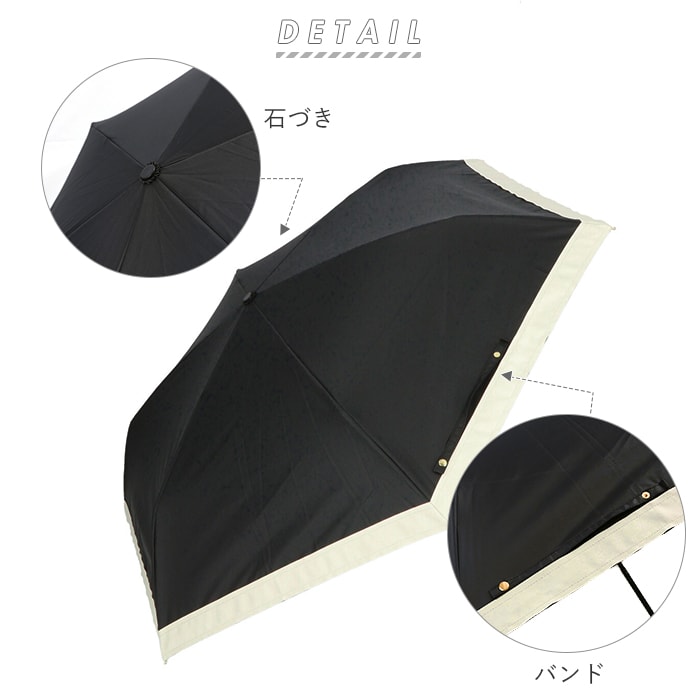 | 注意点 | 使用されている生地がJIS規格JIS L 1055 A法により遮光率100%のものを「100%完全遮光」としております。(縫製・加工部分はその限りではありません。体感温度はご使用環境や個人差により異なります。)裏地加工への強い摩擦や衝撃は剥離につながる恐れがあります。開閉やスライドの際は軽くさばいてからゆっくりと斜め下向きに丁寧にお取り扱いください。(上向きや急速な開閉は接続部に負荷がかかり、早期破損の可能性が高くなります。)閉じた際は、都度紐でまとめてください。開閉の際、やや固い感じやたたみ難さがありますが、生地の特性としてご理解ください。傘には耐久性として若干のあそび部分を持たせています。グラつきと勘違いされることがありますが、これにより破損や伸縮不能を回避します。製品には尖った部分があります。傘の開閉時には顔や身体から離して周囲の安全を十分に確認の上ご使用ください。ステッキがわりに使用しないでください。手元、骨の先端が壊れたまま使用しないでください。強風時は危険ですので使用しないで下さい。ご使用後は陰干しして十分に乾燥させてから次回お使いください。(ご使用後、濡れたまま放置すると防水はっ水力の低下や骨の劣化につながります。)直射日光・高温多湿での保管や放置は退色する場合がありますので避けてくださいカメラやモニターの性質により、画像と実物の色の違いがある場合がございますのでご理解願います。 |