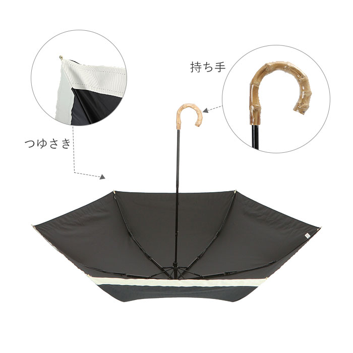 | 素材 | [傘生地の組成] 表生地:ポリエステル100% 裏生地:ポリウレタン(ポリウレタン樹脂コーティング) [親骨]グラスファイバー [中棒]アルミ [手元ハンドル]バンブー |