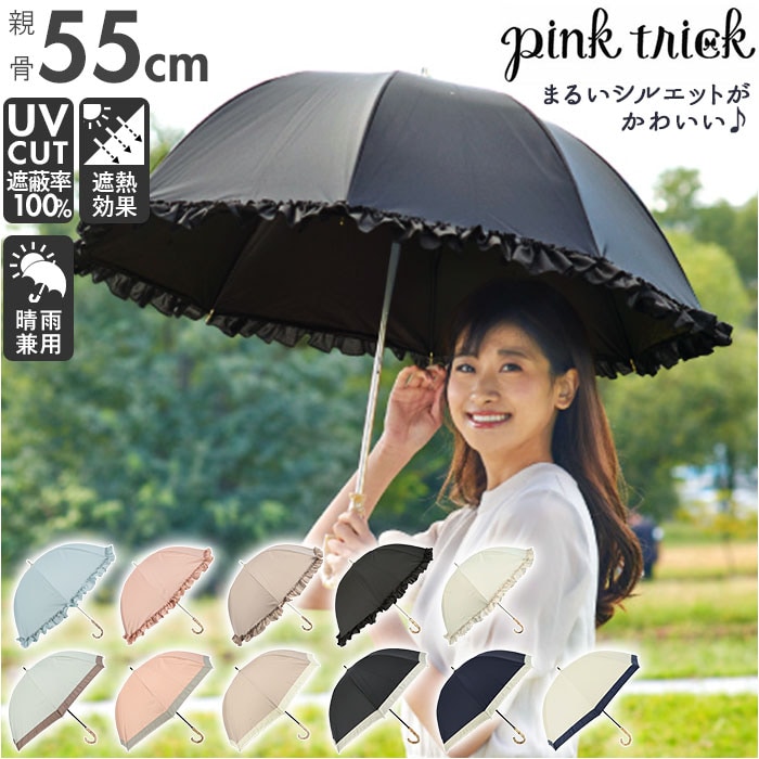 ピンクトリック pink trick 深張り長傘 完全遮光 親骨55cm【204592.フリルIGG】