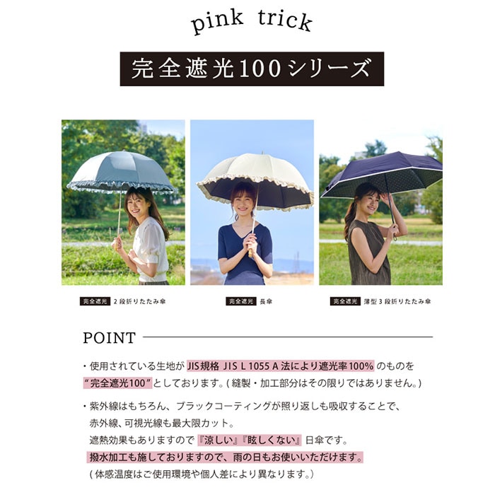 | 商品名 | ピンクトリック pink trick 深張り長傘 完全遮光 親骨55cm |
