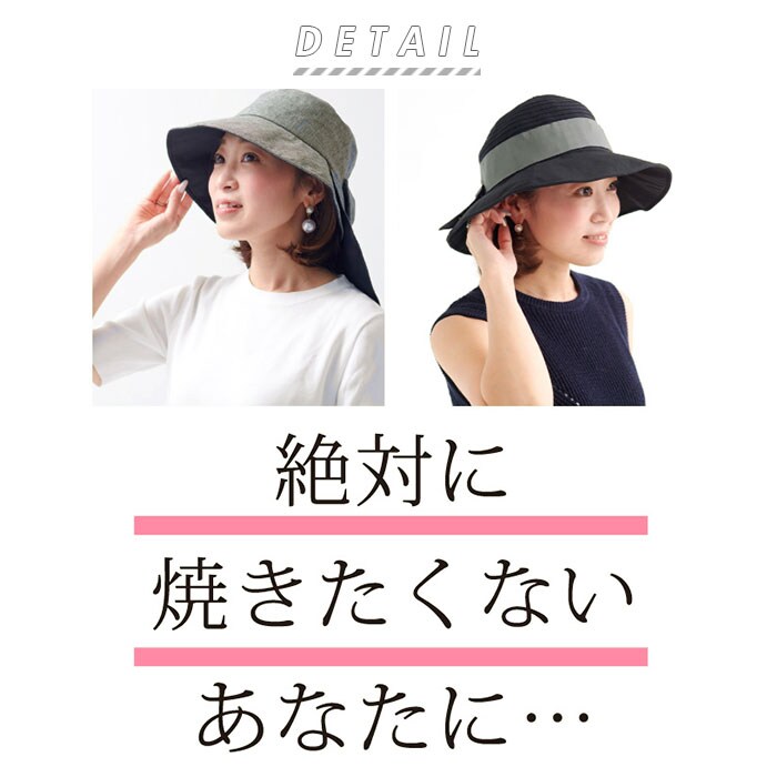 | 商品説明 | いつでもどこでも紫外線対策を!大人気の「pink trick」から、まるで日傘のような完全遮光ハットが新登場♪首筋を日焼けからしっかり守る「日よけリボンハット」と、シンプルな「グログラン切替ハット」の2種類をご用意。【日よけリボンハット】近場へのお出かけやアウトドアには、バックスタイルの大きな日よけを下して紫外線をカット!日よけを折りたたむと、ボリュームたっぷりのビッグリボンがフェミニンなハットに。シーンに合わせて使える2way仕様!【グログラン切替ハット】ハットとリボンのカラーの組み合わせがポイント!カジュアルにもキレイめにも合わせられる万能さが魅力。嬉しい7つのPOINT♪1.ツバ裏生地は遮光率100%。太陽光の照り返しを防ぎ、お顔まわりをしっかりとガード。2.すぐれた遮熱・遮蔽効果。完全遮光100ハットをかぶることで、およそ-10℃体感温度がダウン!3.おでこ部分と頭部分の裏地には接触冷感生地を使用。真夏の暑い日にかぶっても快適に過ごせるのが嬉しい。4.折りたたんでコンパクトにまとまるので持ち運びに便利♪5.おでこ部分にサイズ調整テープ付き。XSはお子様でもご使用いただけるサイズ感♪6.自転車に乗るときも安心な、取り外しOKのあご紐つき。7.ポリエステル生地だからお手入れ簡単。洗濯ネットに入れて洗濯機での丸洗いOK!いつでも清潔に使えて、洗ってもしわになりにくい♪ |