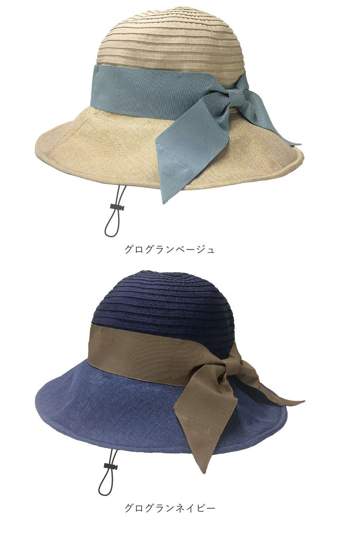 | 重量 | [日よけリボンハット]約112g(※Mサイズの商品の重量です。) [グログラン切替ハット]約124g(※Mサイズの商品の重量です。) |