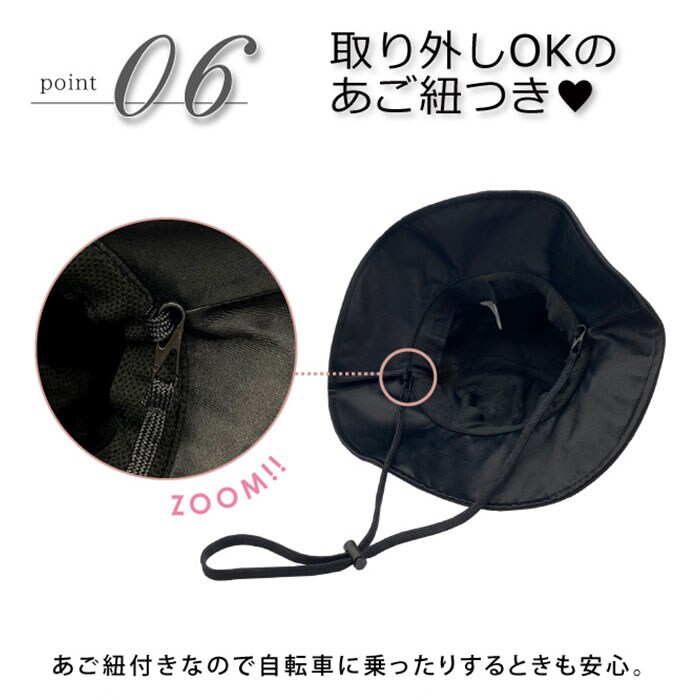 | 注意点 | [完全遮光とは]使用されている生地が、JIS規格 JIS L1055 A法により、遮光率100%のものを「100%完全遮光」としております。強風時の使用および自転車にお乗りの際は、帽子が飛ぶおそれがありますのでご注意ください。お肌に合わない場合や、かぶれ、かゆみ等を感じた場合はご使用をおやめください。本品はたたんで梱包しているため、折り目がついている場合がありますが、使用していくうちになくなります。長時間たたんだままで保管されると、シワになる可能性がありますのでご注意ください。乳幼児の手の届かない場所に保管してください。直射日光、高温多湿での保管や放置は退色する場合がありますので避けてください。カメラやモニターの性質により、画像と実物の色の違いがある場合がございますのでご理解願います。 |