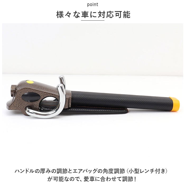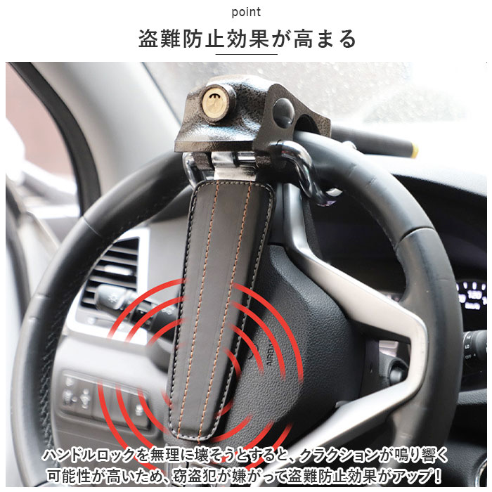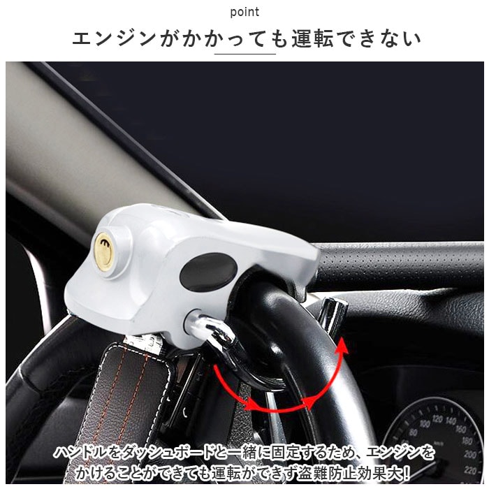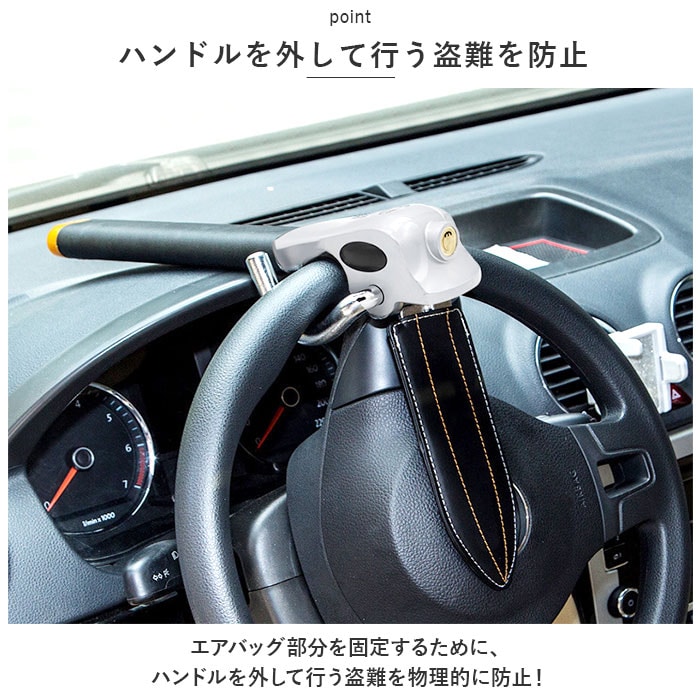 | 商品説明 | 愛車の盗難防止に効果的なハンドルロックが登場!【ハンドルを外して行う盗難を防止】エアバッグ部分を固定するために、ハンドルを外して行う盗難を物理的に防止!【エンジンがかかっても運転できない】ハンドルをダッシュボードと一緒に固定するため、エンジンをかけることができても運転ができず盗難防止効果大!【盗難防止効果が高まる】ハンドルロックを無理に壊そうとすると、クラクションが鳴り響く可能性が高いため、窃盗犯が嫌がって盗難防止効果がアップ!【様々な車に対応可能】ハンドルの厚みの調節とエアバッグの角度調節(小型レンチ付き)が可能なので、愛車に合わせて調節!【簡単な取り付けと解除方法】簡単な取付方法なのに愛車を盗難から守る効果アップ!解除も付属の鍵(3個付き)で手間いらず!【愛車を傷つけない】ハンドルに触れる部分にはパッドが、またダッシュボードに触れる部分は滑りにくい素材で、傷がつきにくい仕様。 |