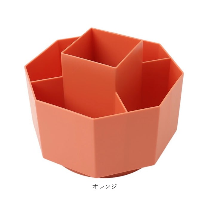 コスメ収納 ペン立て 回転 卓上【オレンジ】
