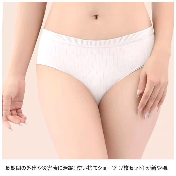 | 商品説明 | 長期間の外出や災害時に活躍!使い捨てショーツ(7枚セット)が新登場。【便利な使い捨てタイプ】旅行や出張、入院など長期間の外出で洗濯ができない時に♪着用済みのショーツをそのまま持ち歩く必要なし!【お肌に優しい生地感】デリケート肌の方も安心の綿素材。柔らかく優しい肌触りで、クロッチ部分は安心の二重構造。【汗ばむ季節も快適】通気性にも優れており、汗をかいてもムレにくい♪シーズン問わず快適に使えるアイテム。【優しくサポート】お尻まわりをしっかり包み込んでくれる、スタンダードなカタチ。いや~な食い込みやズレをガード!【いざという時の備えに】コンパクトに収納OK。防災グッズにリストアップしておくのもおすすめ。【1週間使える7枚セット】カラフルタイプと、シンプルなホワイトタイプ。お好みでチョイスして♪ |