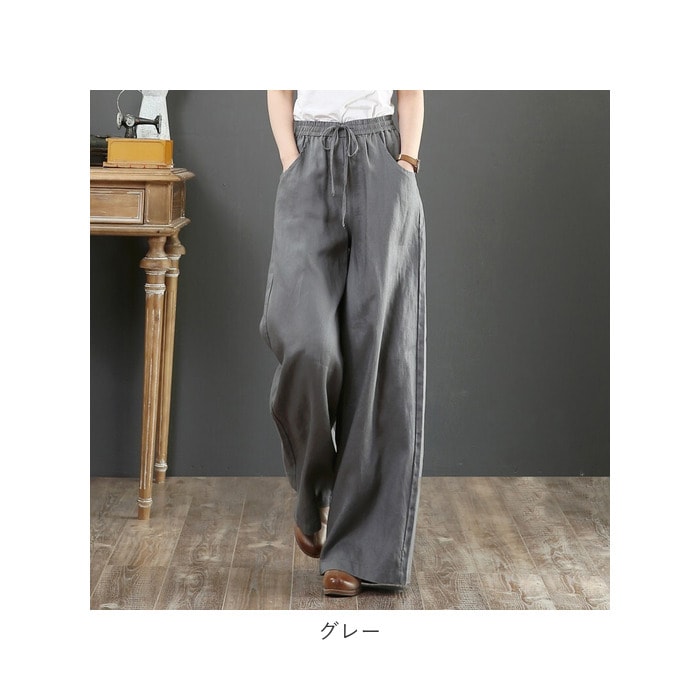 ワイドパンツ リネン pk081452【グレー】【L】