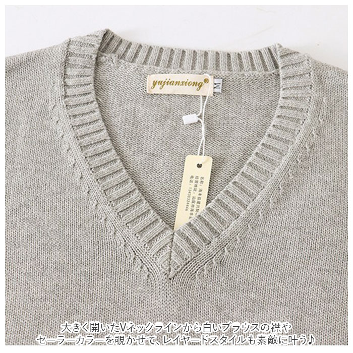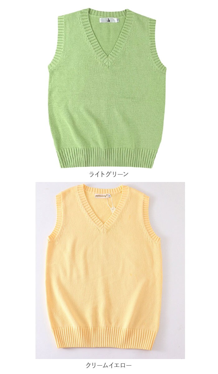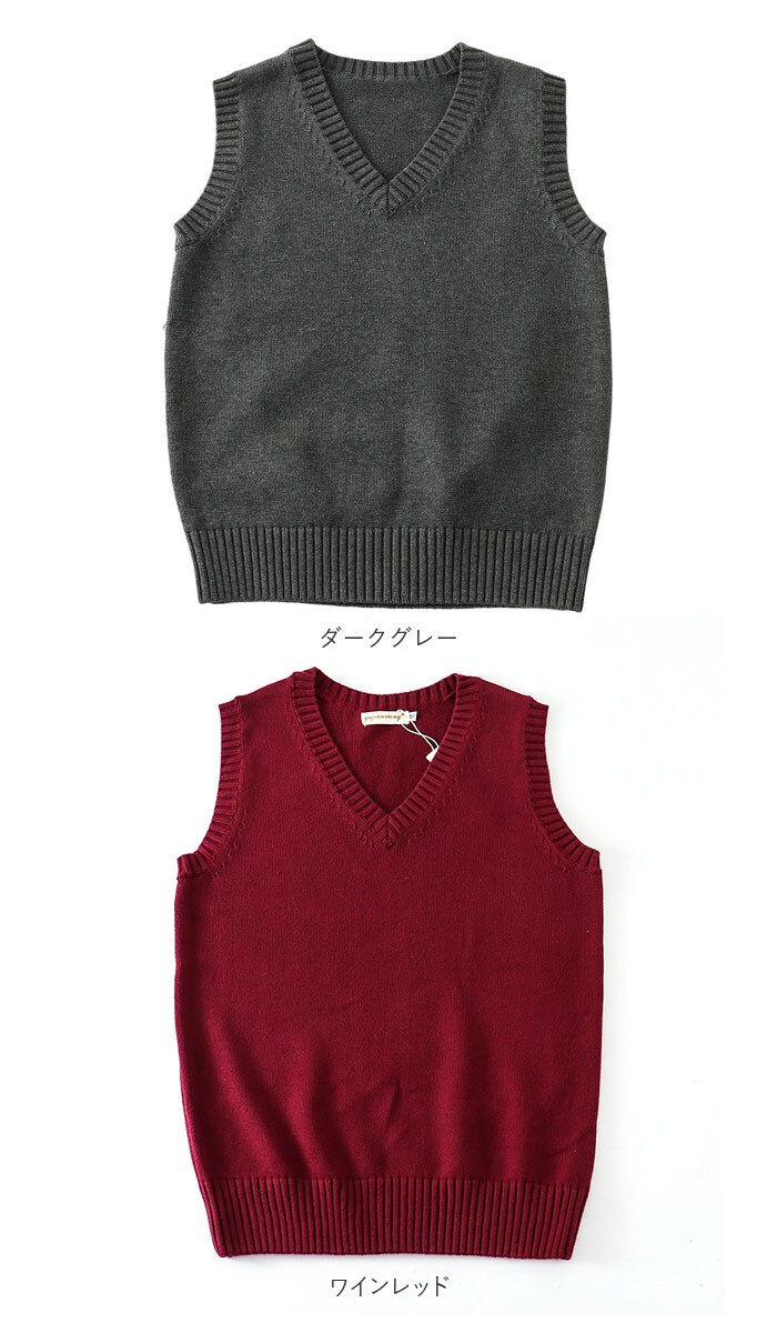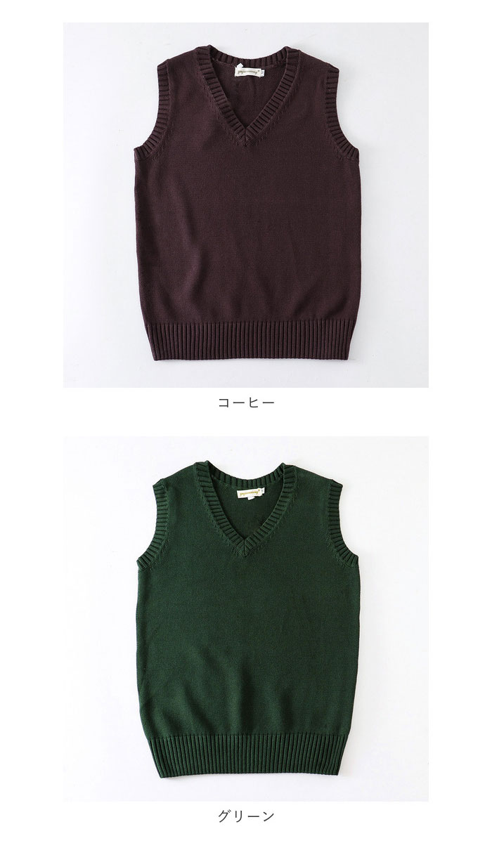 | 商品説明 | 制服コーデが素敵に映える!シンプルで可愛い「スクールニットベスト」肌触りのよさはもちろん、保温性や吸湿性に優れたコットン糸でざっくりと編み込んだ快適ニットベスト。無地のすっきりとした編地に、襟ぐりや袖ぐりにのみ太畝のリブ編みを施した、清潔感のある仕上がり。大きく開いたVネックラインから白いブラウスの襟やセーラーカラーを覗かせて、レイヤードスタイルも素敵に叶う♪制服の上に、裾リブをストンと流して重ね着すれば、ゆるっと女の子らしいシルエットが完成。コットンニット素材なので、ご家庭でのお洗濯もOK!(※手洗いで優しく押し洗いしてください。ドライクリーニングのご利用をおすすめいたします。)自分色に着こなせる豊富なカラーバリエーションで、アフタースクールもオシャレにコーディネート。ベーシックカラーは男子の制服スタイルにもフィット! |