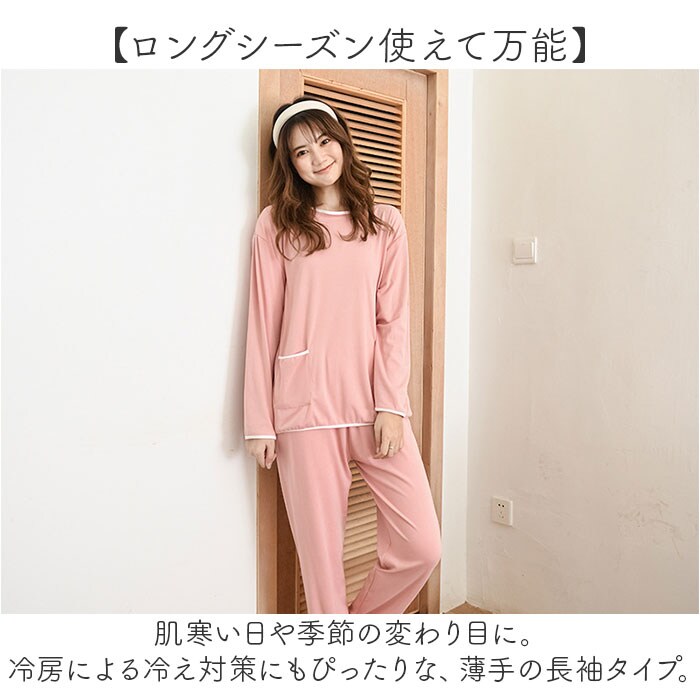 | 商品説明 | 【いつでも快適なお家時間をサポート】心地よくリラックス♪着心地バツグンな「レディース用 ルームウェア」。【締めつけ感のないセットアップ】首元が詰まりすぎないトップス&ウエストゴムでストレスなく履けるパンツのセット。【ロングシーズン使えて万能】肌寒い日や季節の変わり目に。冷房による冷え対策にもぴったりな、薄手の長袖タイプ。【優しい肌触りでチクチク感ゼロ】柔らかく滑らかなコットン素材。肌に触れても安心&汗ばむ季節もサラッとムレにくい!【アクセントにもなるポケット付き】トップスの両サイドに、ポケットを1つずつ配置。リップなどの小物をインしてもOK。【お気に入りを選べるカラー】色違いで揃えるのもおすすめな、バリエーション☆飽きが来ず長く愛用できるシンプルデザイン。 |
