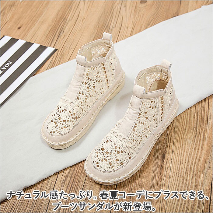 ブーツサンダル レースショートブーツ pk123【ベージュ】【36】