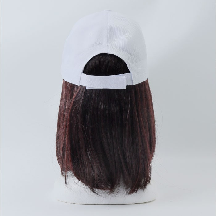 帽子付きウィッグ キャップウィッグ レディース【白帽子×ダークブラウン】