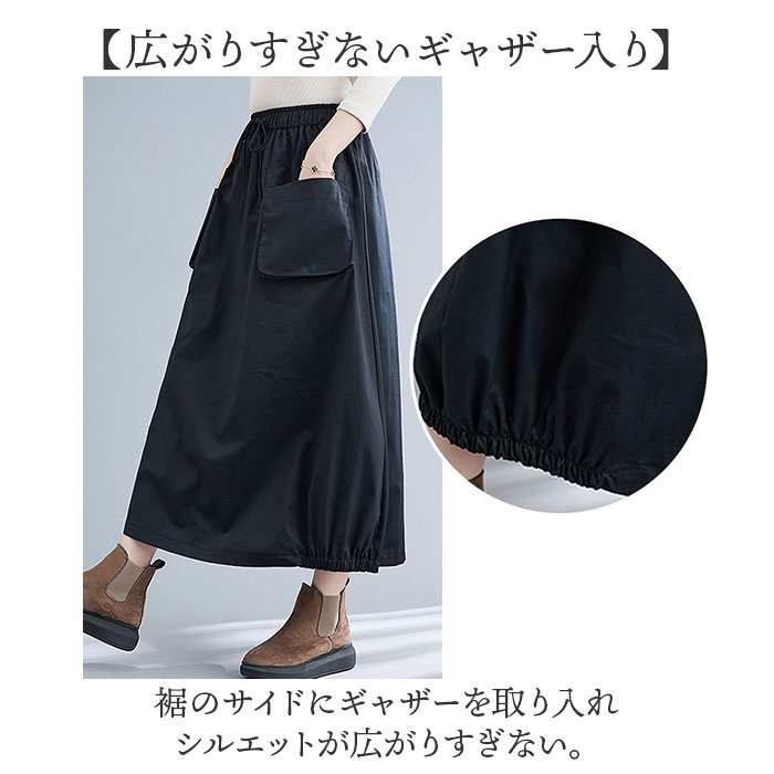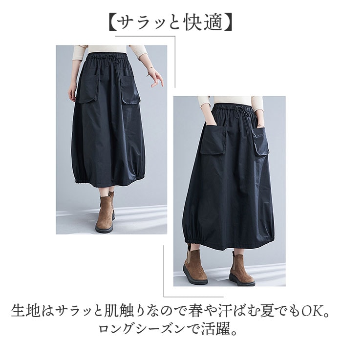 ロング スカート バルーンスカート レディース【ブラック】