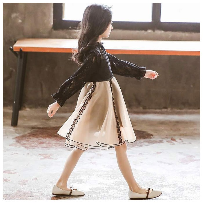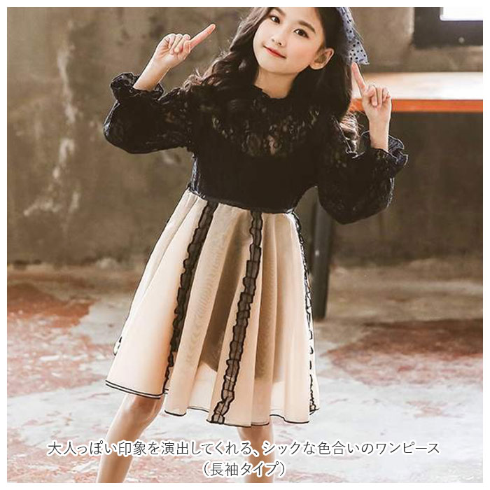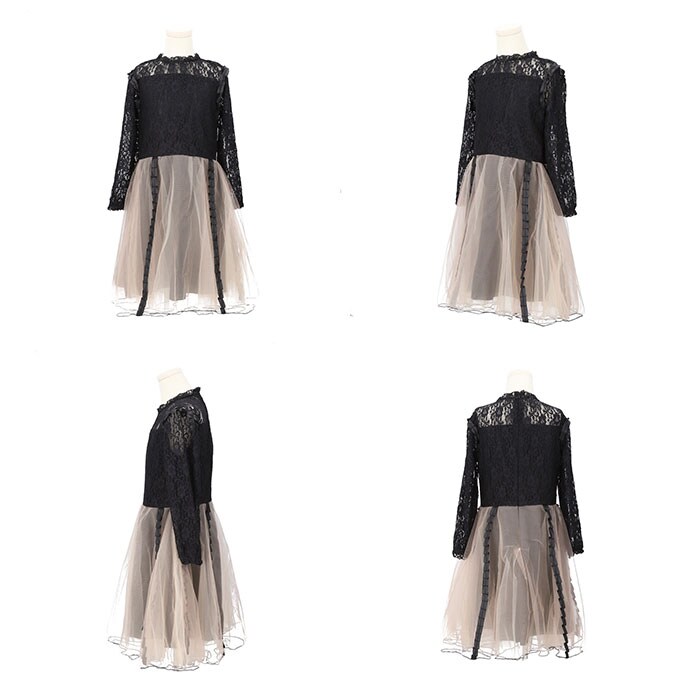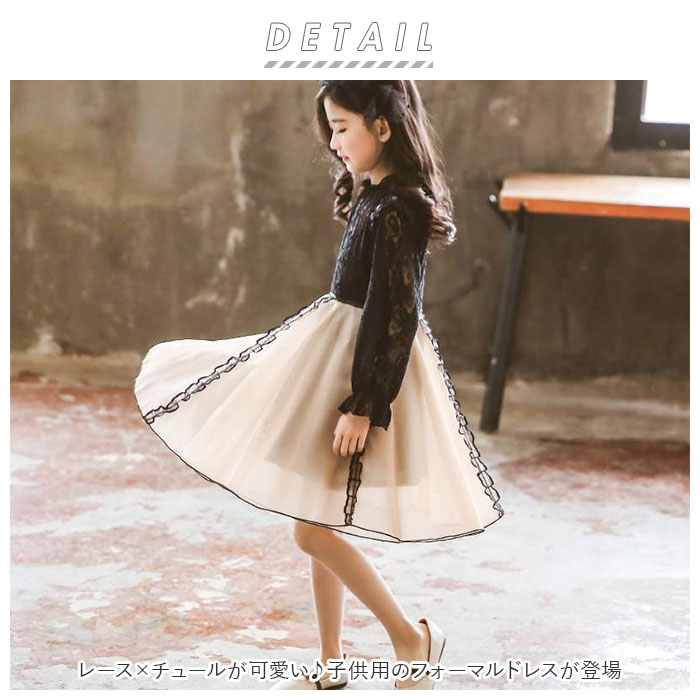 | 商品説明 | レース×チュールが可愛い♪子供用のフォーマルドレスが登場。大人っぽい印象を演出してくれる、シックな色合いのワンピース(長袖タイプ)。上身頃部分は透け感のあるレース素材で、高級感のある佇まい♪チュールスカートはふんわりと広がり、装飾やバイカラーデザインもアクセントに。背中のファスナーで着脱がラクチン。発表会や結婚式のお呼ばれなど、フォーマルシーンにぴったり◎ |