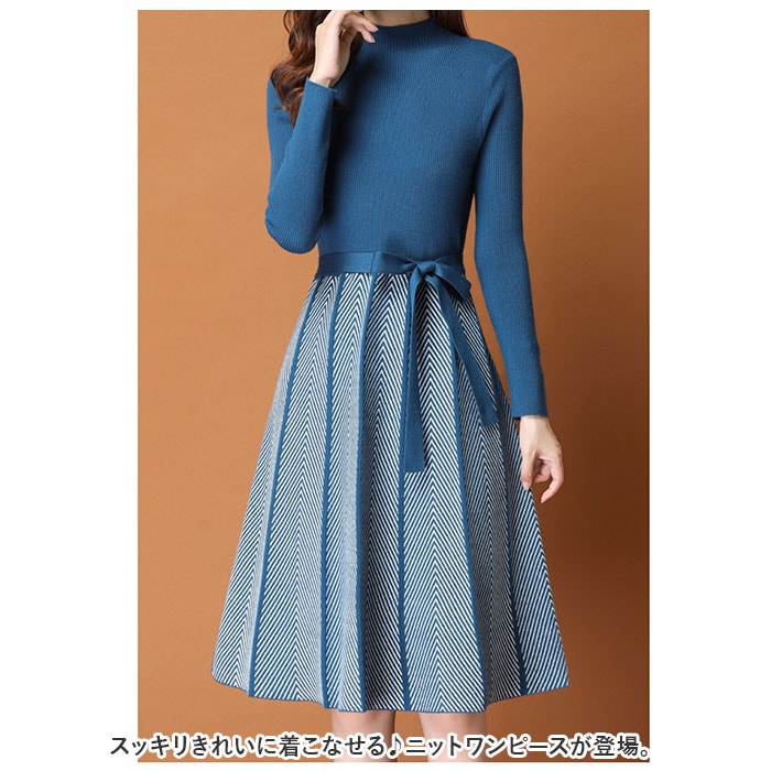 ニットワンピース レディース【ブルー】