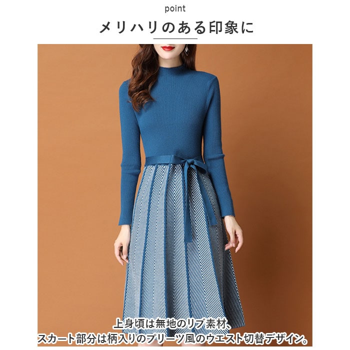 | 商品説明 | スッキリきれいに着こなせる♪ニットワンピースが登場。【ネックレスなどのアクセサリーも映える♪】襟元はやや高さのあるモックネックタイプ。【メリハリのある印象に】上身頃は無地のリブ素材、スカート部分は柄入りのプリーツ風のウエスト切替デザイン。【アクセントになるウエストマーク】【ストレッチ性も!】伸縮性があり、ボディラインに心地よくフィット!取り外し可能なウエストリボン付き。【膝下丈タイプ】ショートブーツなどとの相性抜群。【ちょっぴりフォーマルなシーンにも】上品でキレイめな雰囲気に仕上げたアイテム◎ |
