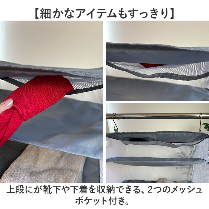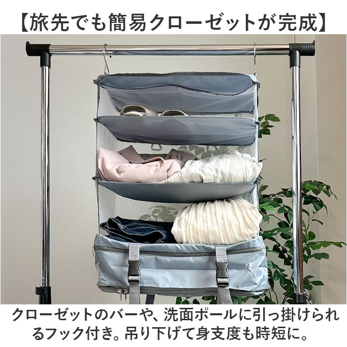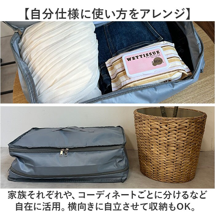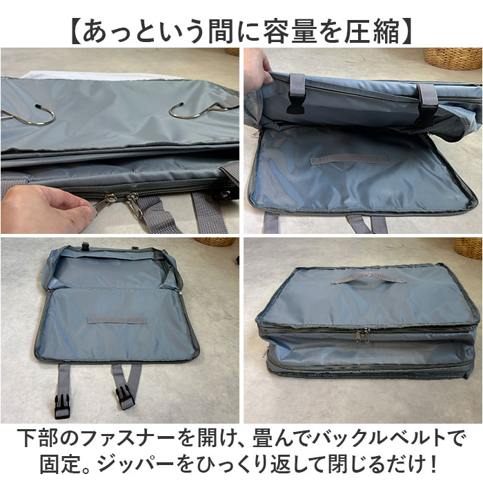 | 商品説明 | 【パッキング簡単!旅行の心強い味方】圧縮&吊り下げできる!便利な「トラベルポーチ」が新登場。【旅先でも簡易クローゼットが完成】クローゼットのバーや、洗面ポールに引っ掛けられるフック付き。吊り下げて身支度も時短に。【あっという間に容量を圧縮】下部のファスナーを開け、畳んでバックルベルトで固定。ジッパーをひっくり返して閉じるだけ!【トラベルバッグのスペースを確保】バッグやスーツケースの中身がすっきり。スペースを有効活用。【仕分けできる4段収納スペース】衣類、タオル、お子さまのおむつを簡単仕分け。着用済みの衣類を分けることも可能。(※)圧縮時、下段のスペースには荷物を入れることができません。【細かなアイテムもすっきり】上段にが靴下や下着を収納できる、2つのメッシュポケット付き。【自分仕様に使い方をアレンジ】家族それぞれや、コーディネートごとに分けるなど自在に活用。横向きに自立させて収納もOK。【お気に入りを選べるカラー】家族みんなで使える、落ち着きのあるカラー。飽きのこない、シンプルな無地デザイン! |