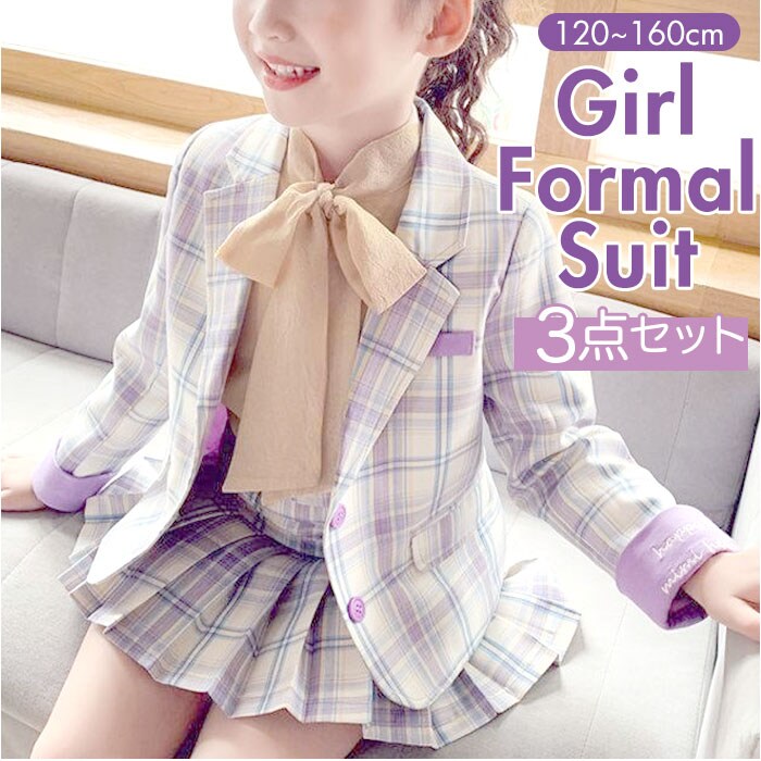 フォーマルスーツ 女の子 3点セット pk157【パープル】【160CM】