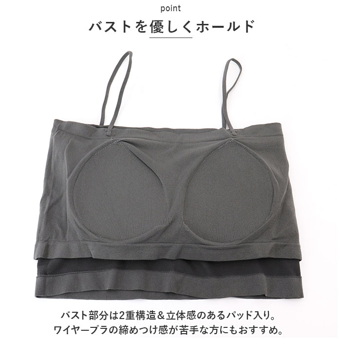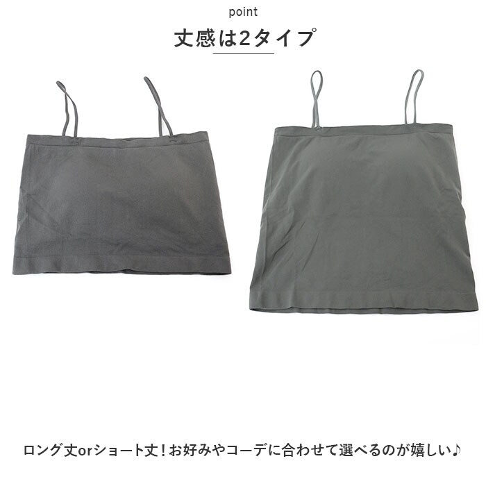| 商品説明 | ストレスフリーな着心地♪カップ付きのキャミソールが新登場。【優しい肌触り】柔らかな薄手の生地感で、汗ばむ季節も快適。【心地よいフィット感】ストレッチ性のある素材なので、体を動かしやすいのもポイント。【バストを優しくホールド】バスト部分は2重構造&立体感のあるパッド入り。ワイヤーブラの締めつけ感が苦手な方にもおすすめ。【丈感は2タイプ】ロング丈orショート丈!お好みやコーデに合わせて選べるのが嬉しい♪【着回し力ばっちり】シアーなトップスやシャツの下に忍ばせれば、トレンド感のあるコーデが完成☆【お気に入りをチョイス】肌馴染みが良く、落ち着きのあるカラーをラインナップ!色違いで揃えてもOK。 |