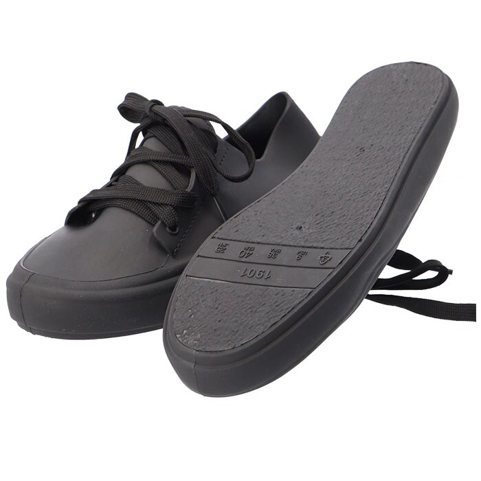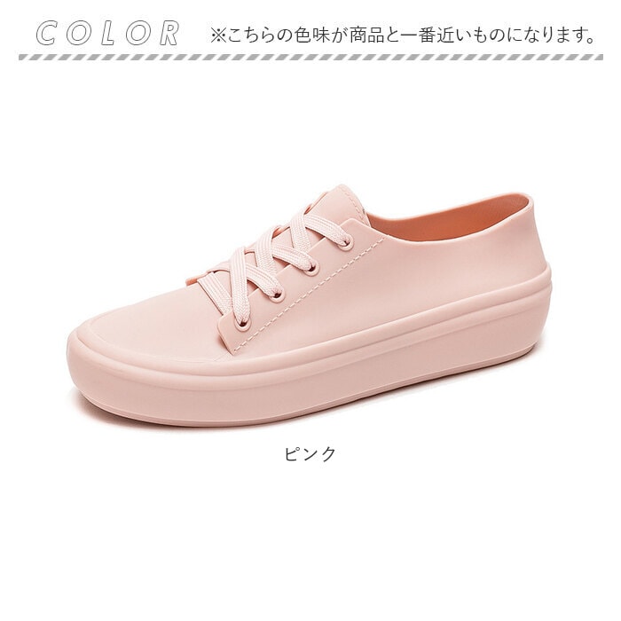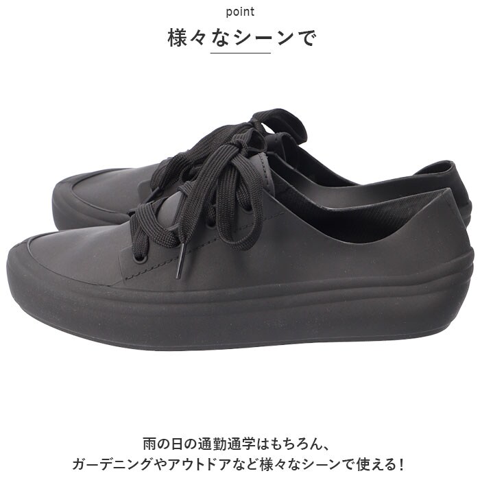| 商品説明 | まるでスニーカーみたいな、レインシューズが登場!【スニーカータイプ】スニーカータイプのレインシューズ。シューレース付きで、デザイン性もUP☆雨の日もスニーカーコーデを楽しみたい方へオススメ。【晴雨兼用】ファッションアイテムとしても使える、晴雨兼用タイプ。レインシューズっぽさがないので、晴れの日に履いても、雨上がりに履いてもGOOD♪【撥水効果】PVC素材を使用しているので、雨の日も靴中が濡れにくく快適。雨粒をしっかり弾いてくれる!【ワンカラー仕上げ】シューレースと靴をワンカラーで仕上げた、シンプルさが魅力。統一感があるのでスタイリッシュな印象。【様々なシーンで】雨の日の通勤通学はもちろん、ガーデニングやアウトドアなど様々なシーンで使える!【選べるカラー】肌なじみの良いカラーバリエーション。どの色もお洋服に合わせやすい♪お好みをチョイス! |