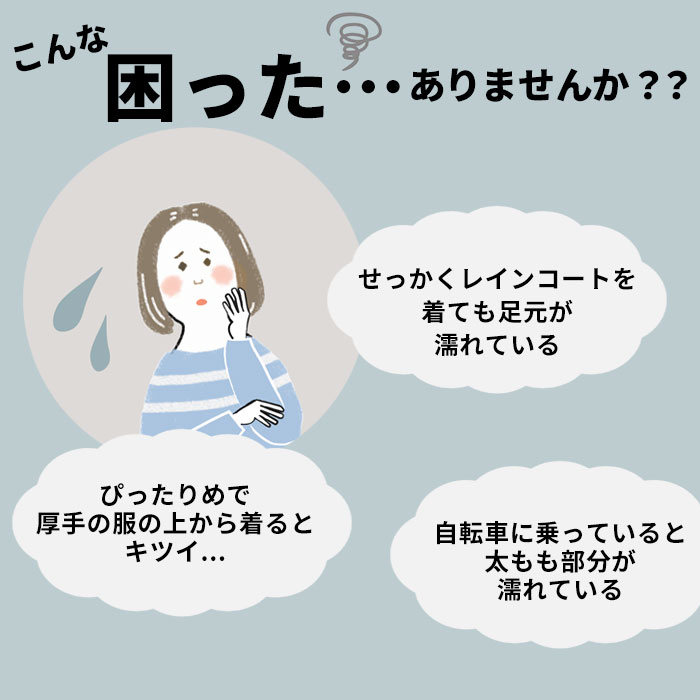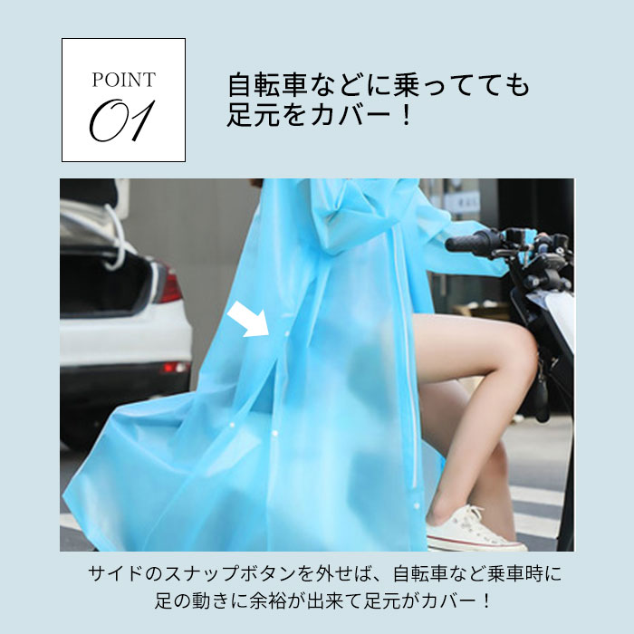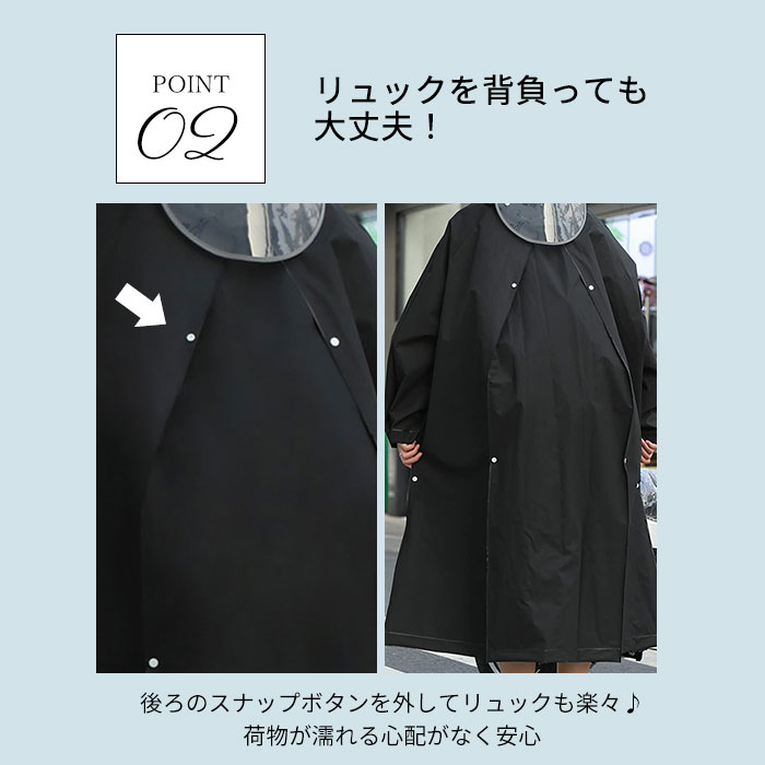 | 商品説明 | 全身すっぽり。ポンチョのようでレインコートな袖付きのレインコート。足元が濡れにくいロング丈仕様。サイドのスナップボタンを外せば、自転車など乗車時に足の動きに余裕が出来て足元がカバー!後ろのスナップボタンを外してリュックも楽々♪荷物が濡れる心配がなく安心。袖付きなので、自転車の運転時に袖がめくれ上がりにくい。さらにボタンで袖口の調整も可能。つばは透明なので視界も良好◎付属の透明つばを付ければ2重つばに。雨や風から顔をガードして化粧崩れ予防の必須アイテム。小物や鍵など・・・あると何かと便利なポケット×2付き。男女兼用も出来る大判サイズだから家族で使えるのもうれしい♪ |