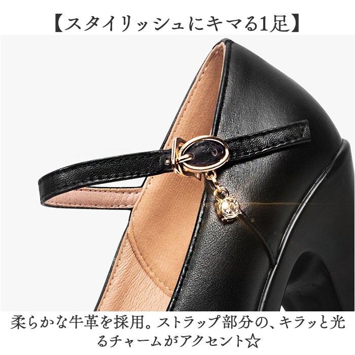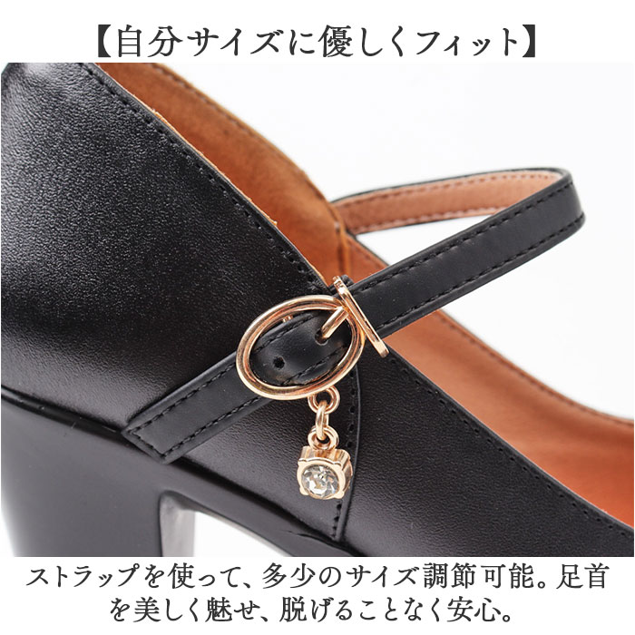 | 商品説明 | 【キレイなレッグラインを演出】足のラインを美しく魅せ、安定感も抜群。大人女子にぴったりなハイヒール。【スタイリッシュにキマる1足】柔らかな牛革を採用。ストラップ部分の、キラッと光るチャームがアクセント☆【自分サイズに優しくフィット】ストラップを使って、多少のサイズ調節可能。足首を美しく魅せ、脱げることなく安心。【足裏を優しく受け止めてくれる】足裏に直接当たる部分は、程よくソフトな素材を使用。足が痛くなりにくい◎【スタイルアップが叶う3種のヒール】ヒールの高さは、6cm・9cm・11cmの3タイプをご用意。足元スラリ&身長もアップ☆【安定感のあるチャンキーヒール】通常のヒールより太めに設計。地面との接触面積が大きく、ストームで前後差を抑え疲れにくい◎(※)つま先側のアウトソールには凹凸付きです。【上向き形状で歩きやすさもばっちり】つま先を適度に反らせたつくり。高さがありつつも、踏み出しやすくつまずきにくい!【シンプルなモノトーンカラー】ベーシックな色合いの、シンプルなワンカラー仕上げ。コーデを選ばず活躍。 |