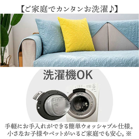 | 商品説明 | 【お使いのソファにサッと掛けるだけ】ぷっくり浮き上がったリーフモチーフでお部屋が優しい雰囲気に。「キルティングソファーカバー」【温かみのあるキルト風デザイン】流れるような曲線が美しいリーフ模様を、レリーフ状にふっくら仕上げたキルティングデザイン。【オールシーズン快適な素材感】ふんわり柔らかな質感と、サラリと気持ちよい肌触りでオールシーズン快適な座り心地を実現。【普段使いのソファをリニューアル】座面部分を敷き詰めるように覆うことで、キズや汚れが目立つソファをワンポイントリニューアル。【ペットの爪とぎ対策にも効果的】生地に程よく厚みがあり、ペットがガリッと爪を立ててしまいがちなレザーのソファの保護にも。【裏面ドット滑り止め加工】裏面はシリコンドットの滑り止め加工済み。お掃除のたびにカバーのズレを直す手間が軽減。【ご家庭でカンタンお洗濯♪】手軽にお手入れができる簡単ウォッシャブル仕様。小さなお子様やペットがいるご家庭でも安心。※洗濯機をご使用の際は、洗濯ネットをご使用ください。【3人掛けのソファにオススメ】お使いのソファに合わせて「70cm×180cm」「90cm×160cm」の2種類からピッタリサイズをチョイス!【選べるカラーで、気持ち華やぐ】さりげなくソファに掛けて優雅な空間を演出!落ち着きのある大人カラーがお部屋のアクセントに。 |