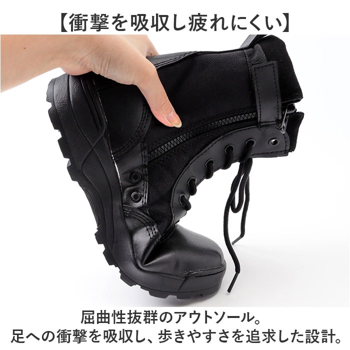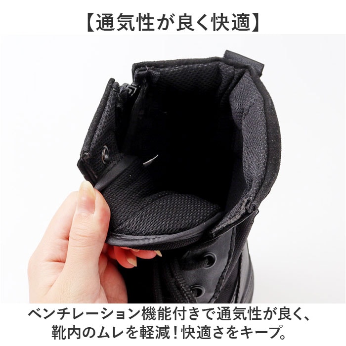 | 商品説明 | 【機能的で歩きやすい!】アウトドアやサバゲーなど様々なシーンに対応できるミリタリーブーツが登場。【脱ぎ履きスムーズ】サイドファスナーで脱ぎ履きしやすい仕様。面ファスナーベルトも付いていて足首をしっかりホールド!【衝撃を吸収し疲れにくい】屈曲性抜群のアウトソール。足への衝撃を吸収し、歩きやすさを追求した設計。【滑りにくいアウトソール】ソールにはしっかりとした溝があるのでグリップ力に優れ、安定した歩行をサポート。【通気性が良く快適】ベンチレーション機能付きで通気性が良く、靴内のムレを軽減!快適さをキープ。【ユニセックスデザイン&カラー】ユニセックスで履けるから、家族やカップルでお揃いにするのもオススメ! |