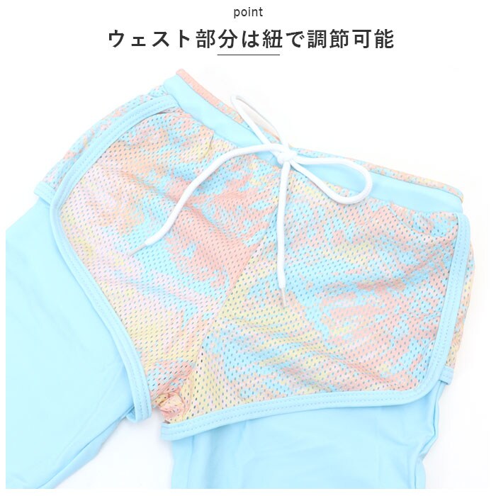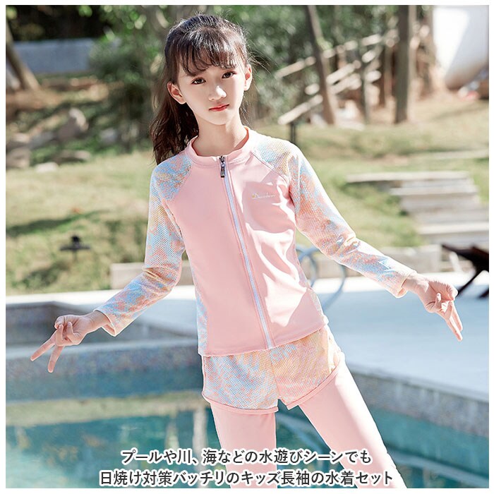 | 商品説明 | プールや川、海などの水遊びシーンでも日焼け対策バッチリのキッズ長袖の水着セット。【露出控えめデザイン】伸縮性のある素材を使用。メッシュの長袖タイプのラッシュガードと一体型のレギンスで、露出控えめデザイン。日焼け対策はもちろん、ケガ防止にも◎【着脱簡単】セパレートタイプなので着替えやトイレなど着脱がラクラク♪ウェスト部分は紐で調節可能。【フルジップのラッシュガード】上着はフルジップのラッシュガード。首回りも狭すぎず広すぎないラウンドネックで、水に濡れても首まわりが苦しくならない◎【ウォータースポーツにも最適♪】韓国風パステルカラーをベースで可愛い印象に♪夏休みの水遊びレジャーがもっと楽しくなる!ウォータースポーツにも最適♪ |