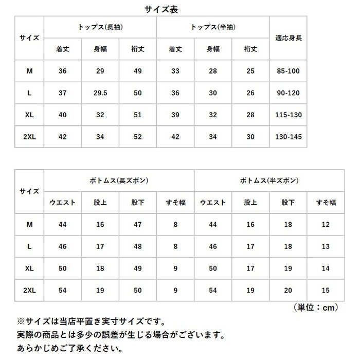 | 重量 | 約216g(※Lサイズ長ズボンタイプの上下セットの重量です。) |