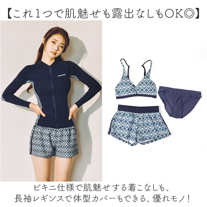 | 商品説明 | 【ビキニも露出なしも叶える!】甘さを抑えたスポーティデザインが嬉しい☆セットアップ水着 5点セットが登場。【これ1つで肌魅せも露出なしもOK◎】ビキニ仕様で肌魅せする着こなしも、長袖レギンスで体型カバーもできる、優れモノ!【可愛すぎる水着が苦手な方へ☆】シンプル&スポーティーで、女性らしいけど甘くない、ちょうどいいデザイン。【日よけ対策や水冷え対策もお任せ!】長袖とレギンスは、日よけや水冷え対策にもぴったり!海や川でのケガの予防にもお役立ち。【よく伸びる生地でストレスフリー】伸縮性に優れた生地で、動きやすい。マリンスポーツにも最適な、ストレスフリーな着心地。【パットは取り外し可能!】パットはお好みで取り外しや、取り替えOK。盛りたい気分の日は付け足しもできちゃう!【他デザインも販売中☆】同シリーズのいろんなデザインを、他のページで販売中!お気に入りを見つけて♪ |