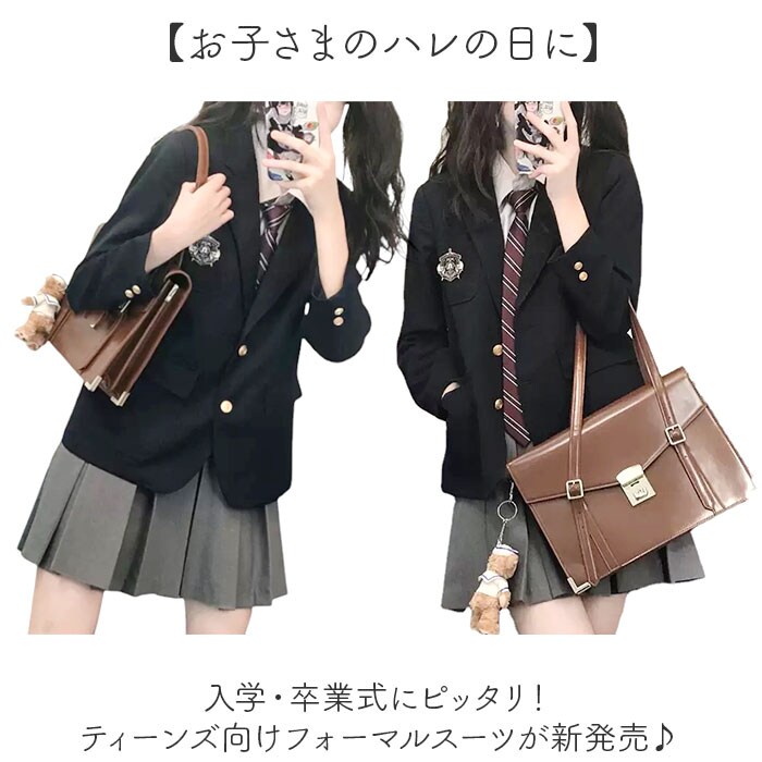 | 商品説明 | 【お子さまのハレの日に】入学・卒業式にピッタリ!ティーンズ向けフォーマルスーツが新発売♪【1つでワンコーデが完了!】ブラウス、ジャケット、スカートはもちろん、ネクタイが付いたセットアップアイテム【卒業式や入学式に】小学校の卒業式や制服のない高校や中学の入学式に。厚手の生地でフォーマルに着こなしできる【制服風デザイン】制服がない学校の通学用として着るのもおススメ♪シンプルな普段使い出来る制服風のデザイン【便利なポケット付き】ブラウスやジャケットにはハンカチなど小物が収納できるポケット付き。【ワンタッチネクタイ】ストラップで簡単装着できるワンタッチネクタイ♪初心者さんでもスムーズに着脱可能◎【プリーツスカート】ざっくりと大きいプリーツスカートが今っぽい作り。裏地は安心のインナーパンツ仕様♪【単品使いも】それぞれ単品で使ってもオシャレに決まるデザイン。お手持ちの洋服と組み合わせてもOK! |